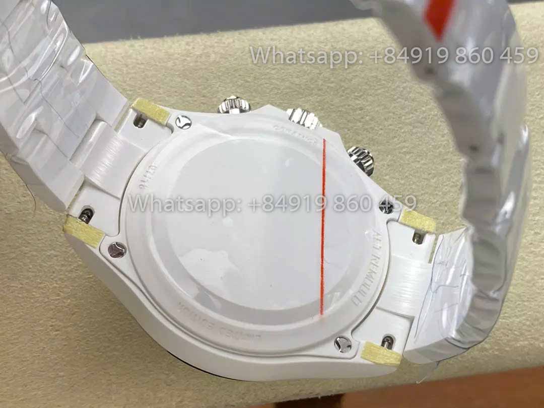 Sumérgete en el mundo de la elegancia refinada con la exclusiva colaboración IPK Fabbrica Custom Rolex Bianco ceramica Daytona x AET: una obra maestra diseñada para cautivar. Esta edición especial del Rolex Daytona está elaborada a la perfección, cautivando tanto a hombres como a mujeres con su impactante diseño y su personalización inigualable.