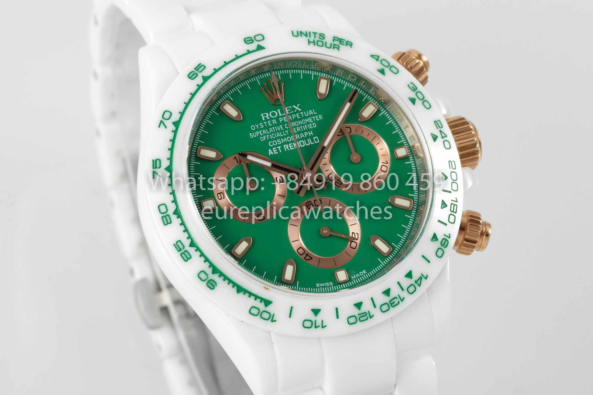 AET REMOULD Rolex Daytona personalizado Caja de cerámica blanca Esfera verde 1:1 Mejor clon N6F Fabbrica