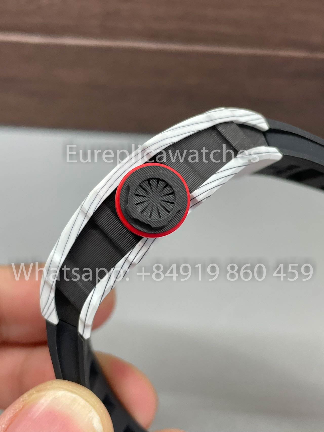 Richard Mille RM35-01 Bianco Carbonio Cassa 1:1 Mejor clon BBR Fabbrica V2 Nero Gomma cinturino