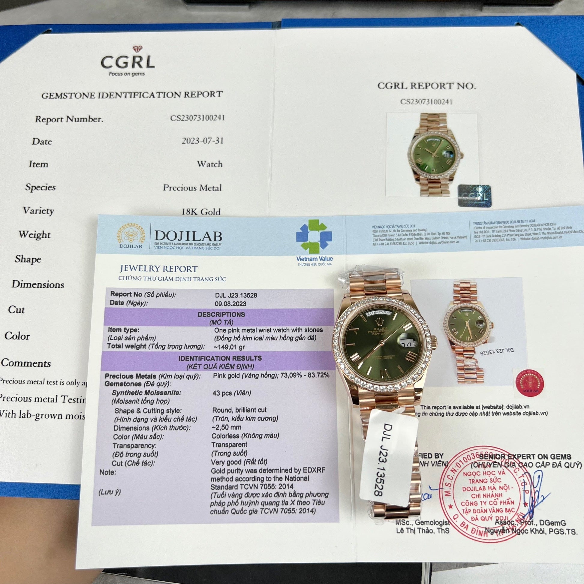 Rolex Day-Date 40 228345RBR Cuadrante oliva con oro rosa de 18 quilates envuelto y diamantes
