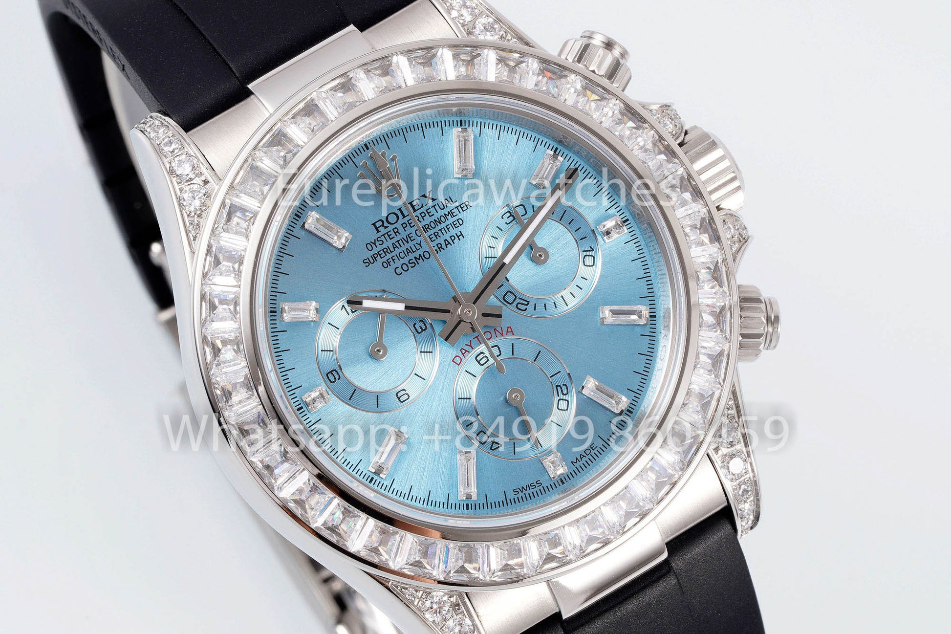 Rolex Daytona Rainbow Ice quadrante blu 40mm 1:1 Best Clone EF Fabbrica Gomma cinturino