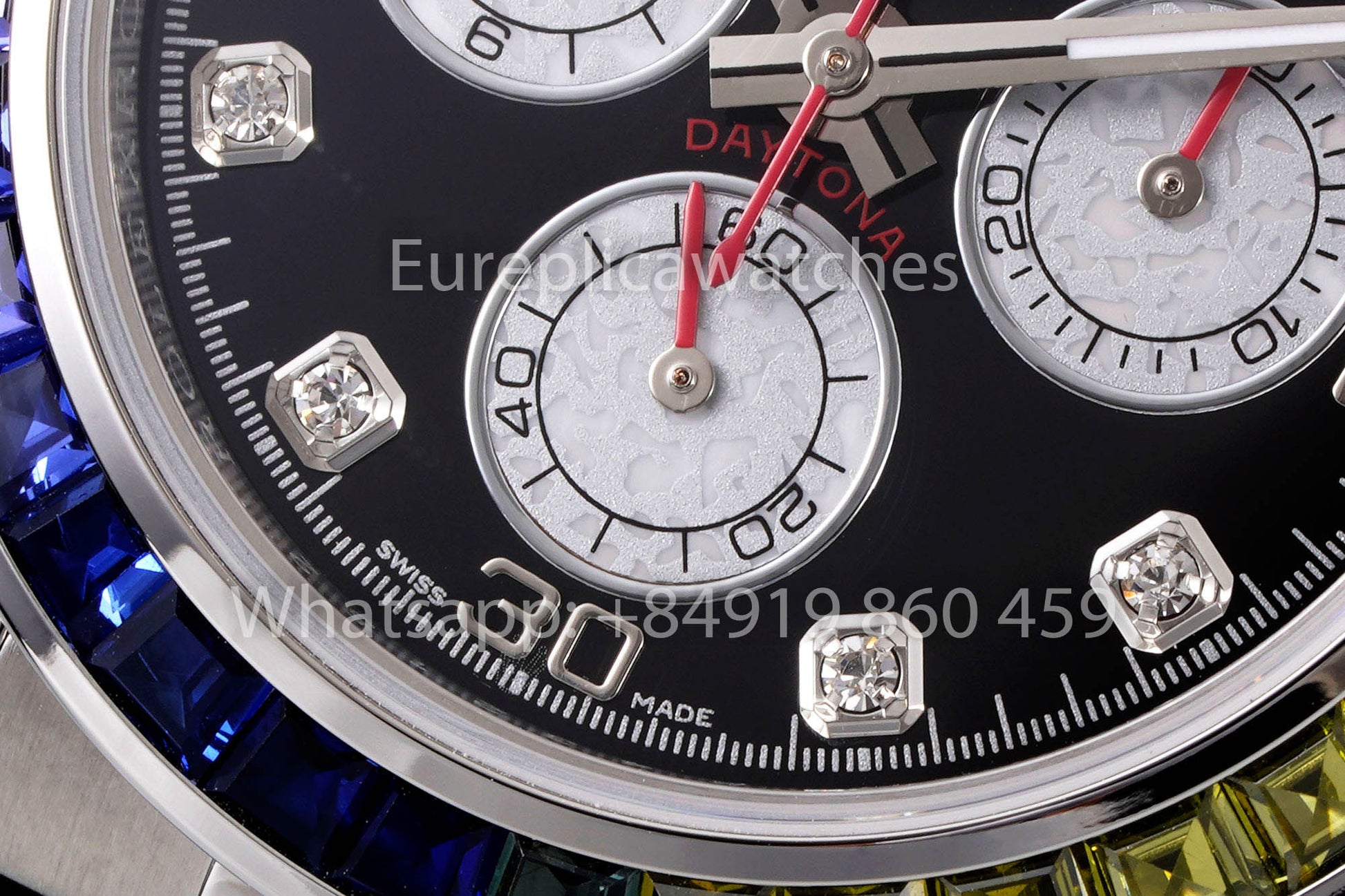 Rolex Daytona Rainbow quadrante nero 40mm 1:1 Best Clone EF Fabbrica Argento acciaio inossidabile