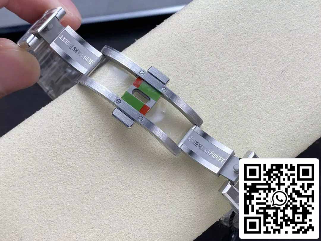 The watch has a closed case back, engraved with the Royal Oak series name. It is powered by a Swiss ETA quartz movimento, ensuring accurate timekeeping!