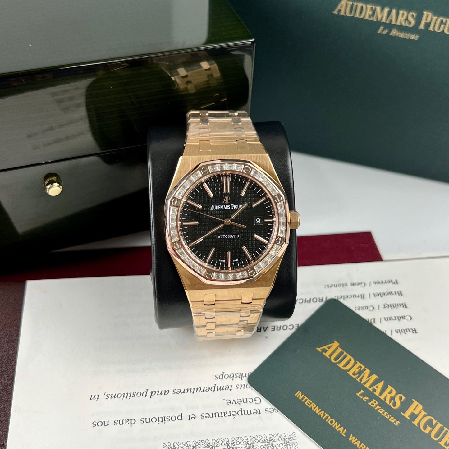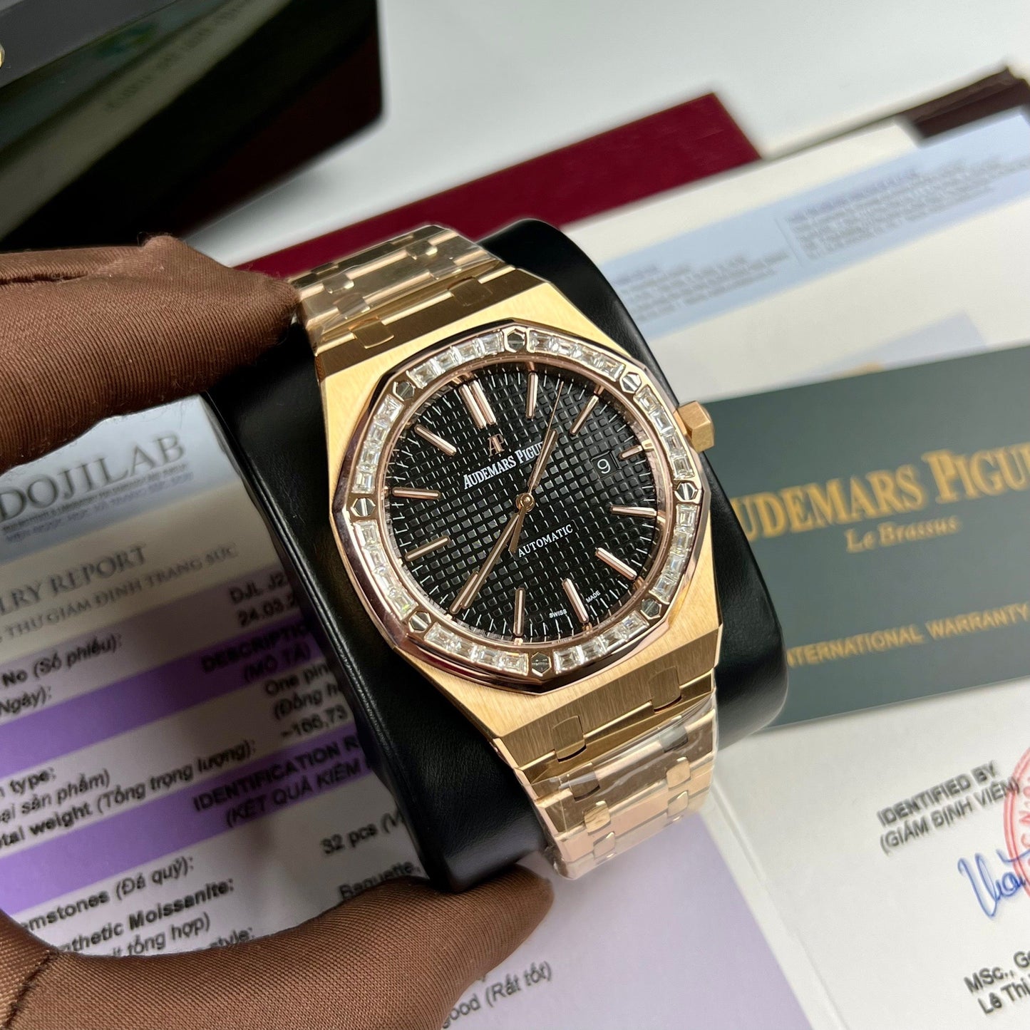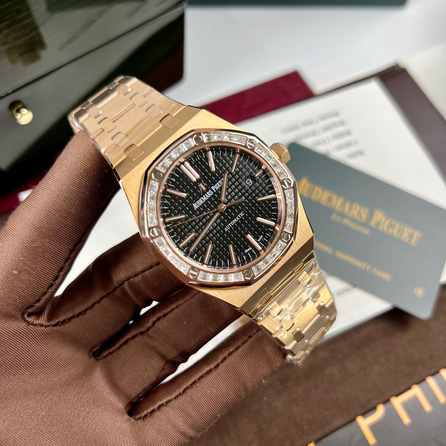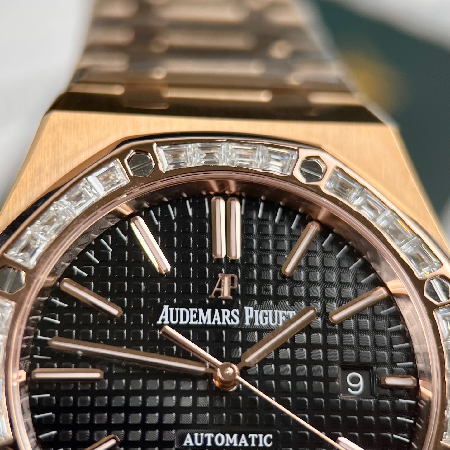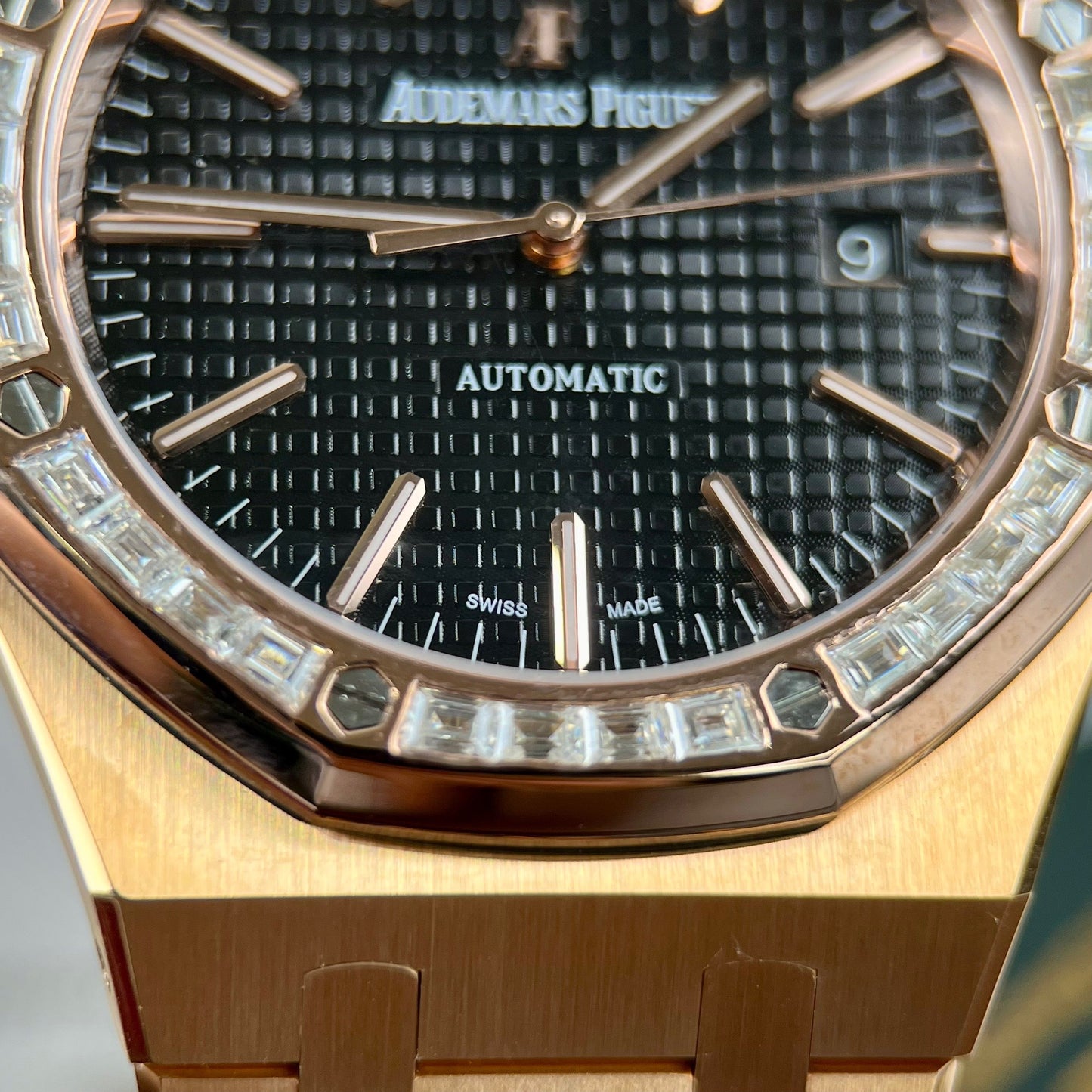 Audemars Piguet Royal Oak 15400OR custom Moissanite baguette and 18k Rosa Oro