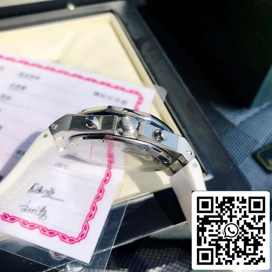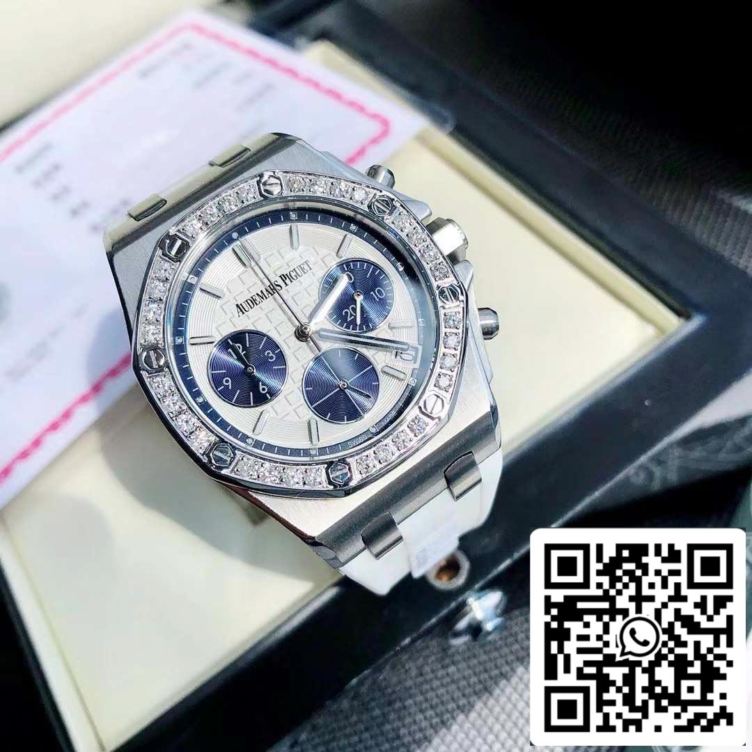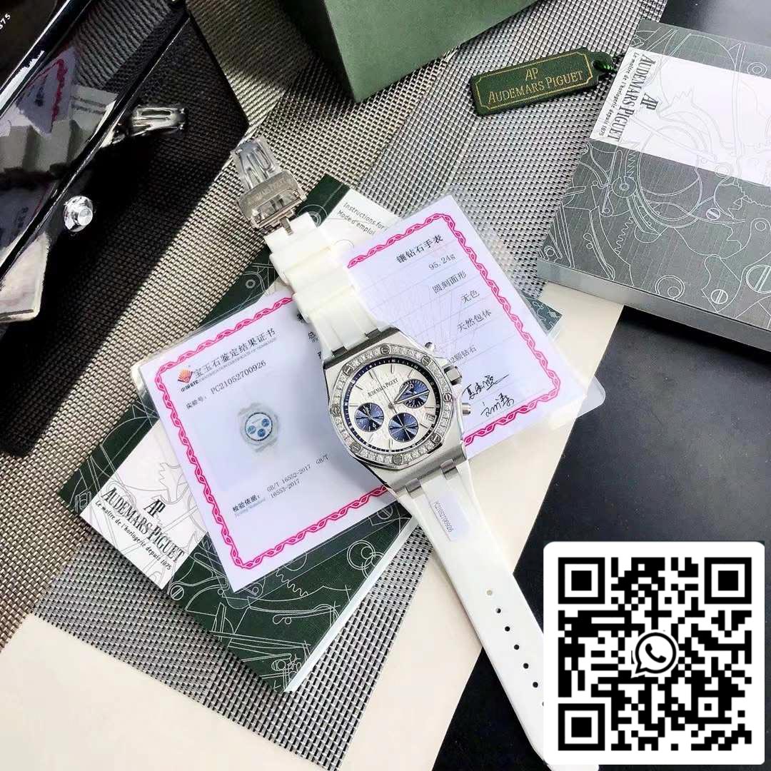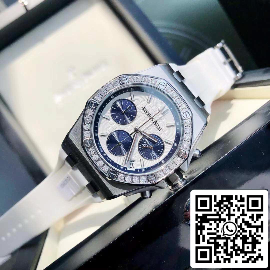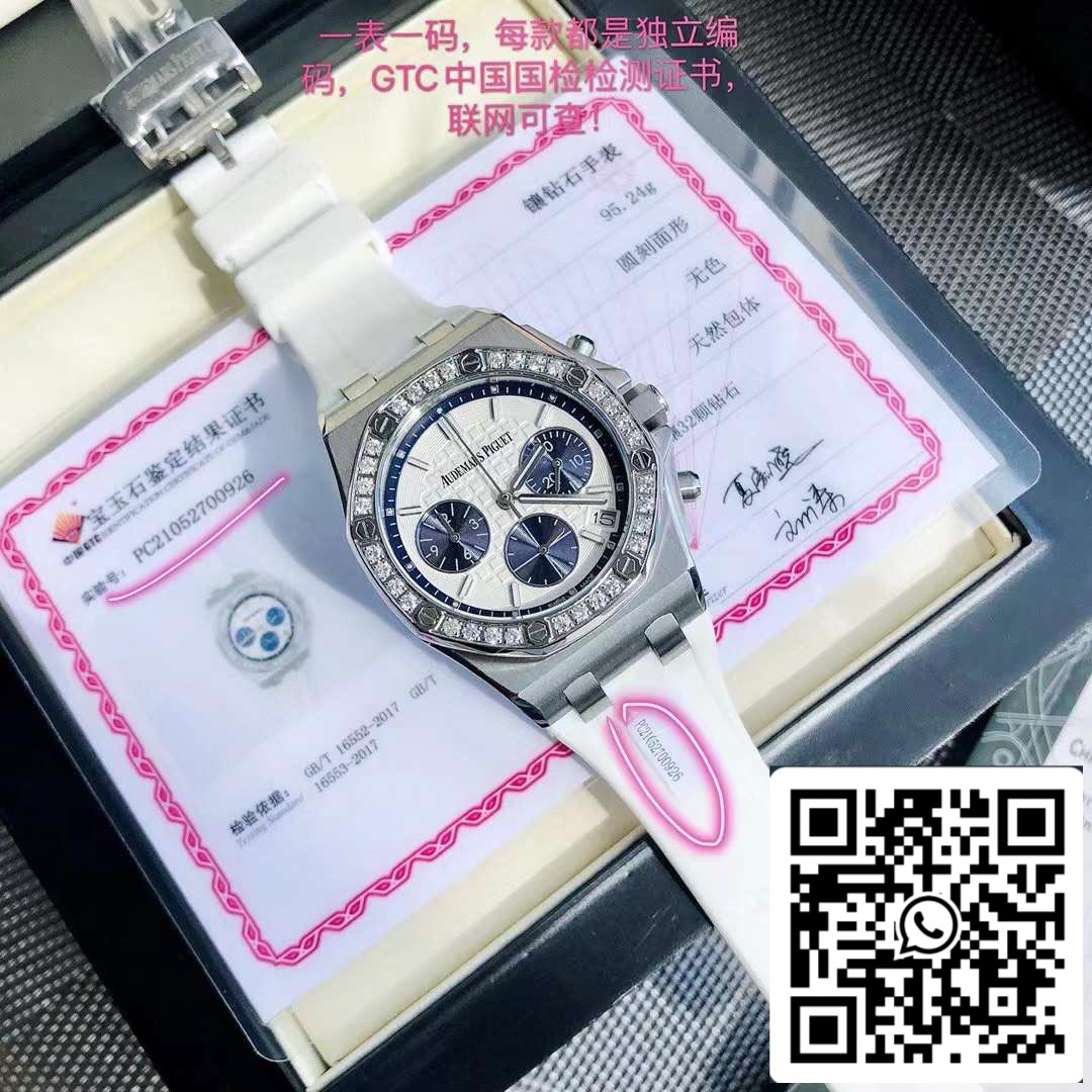 The latest Royal Oak Offshore series chronograph quartz watch, one of the most popular Audemars Piguet women's watches at the moment! A.P-Audemars Piguet Royal Oak Offshore series, the dial is decorated with Lady Tapisserie pattern, presenting a stronger visual impact. The 904 acciaio inossidabile case is inlaid with diamonds and 32 2.0 brilliant vvs cut diamonds (approximately 1.02 carats) bring extraordinary touch and visual enjoyment. According to the Audemars Piguet counter sale, their diamonds are only set in D color, showing a brilliant luster. This is the attitude that only jewelry and watches have. The size of the watch is 37 mm, which caters to the modern pursuit of large-diameter women's watches, creating a more heroic side of women. It is full of sparkle and texture. The cinturino is made of white liquid silicone and is an EU-certified environmentally friendly material. It can be used when dirty. Rinse with clean water or wipe with wet paper towels. Six-hand timing imported quartz movimento, accurate and zero error in travel time. Sapphire scratch-resistant glass makes reading clearer. The octagonal case design is unique and full of vitality. The best classic for women!