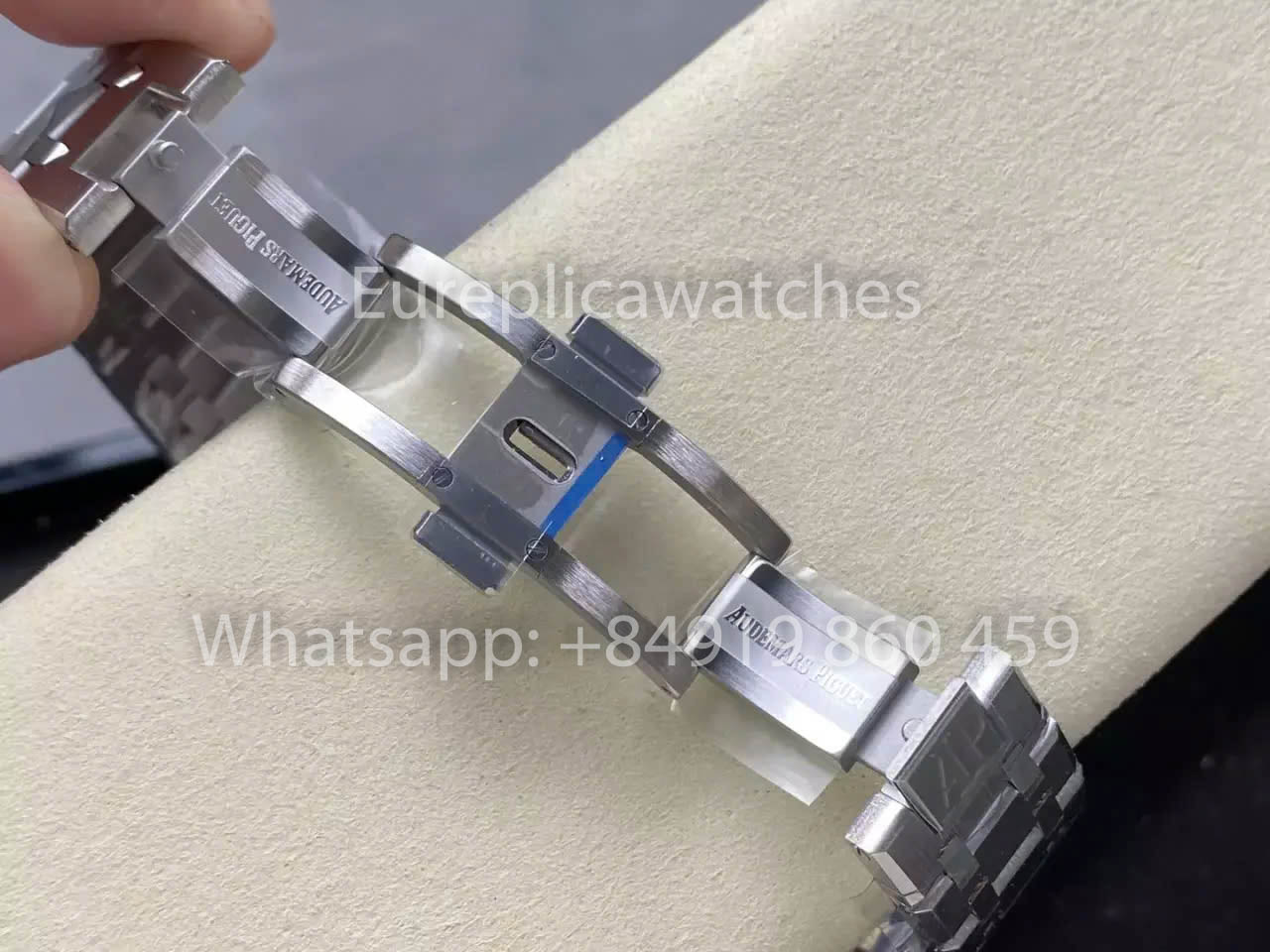 - Dial Details: The "TAPISSERIE" pattern on the dial is precisely arranged, complemented by platinum luminescent hour markers and Royal Oak hands. These details, when seen in person, are truly breathtaking.