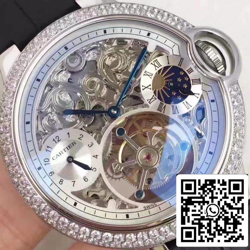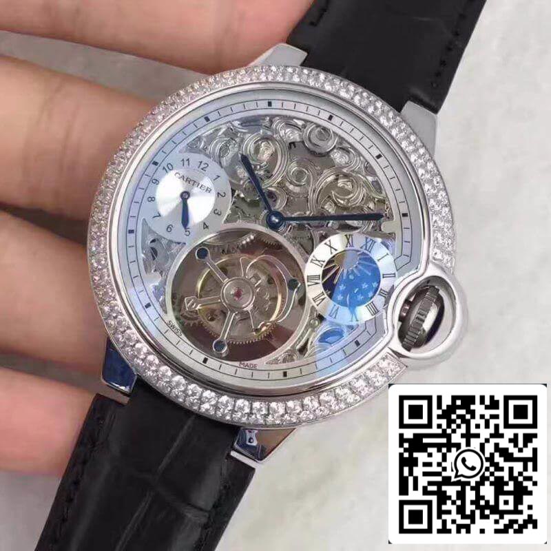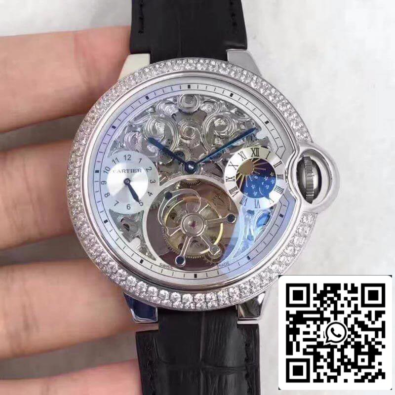 Ballon Bleu De Cartier Tourbillon 1:1 Best Edition Swiss Tourbillon Diamonds bezel Black Leather cinturino