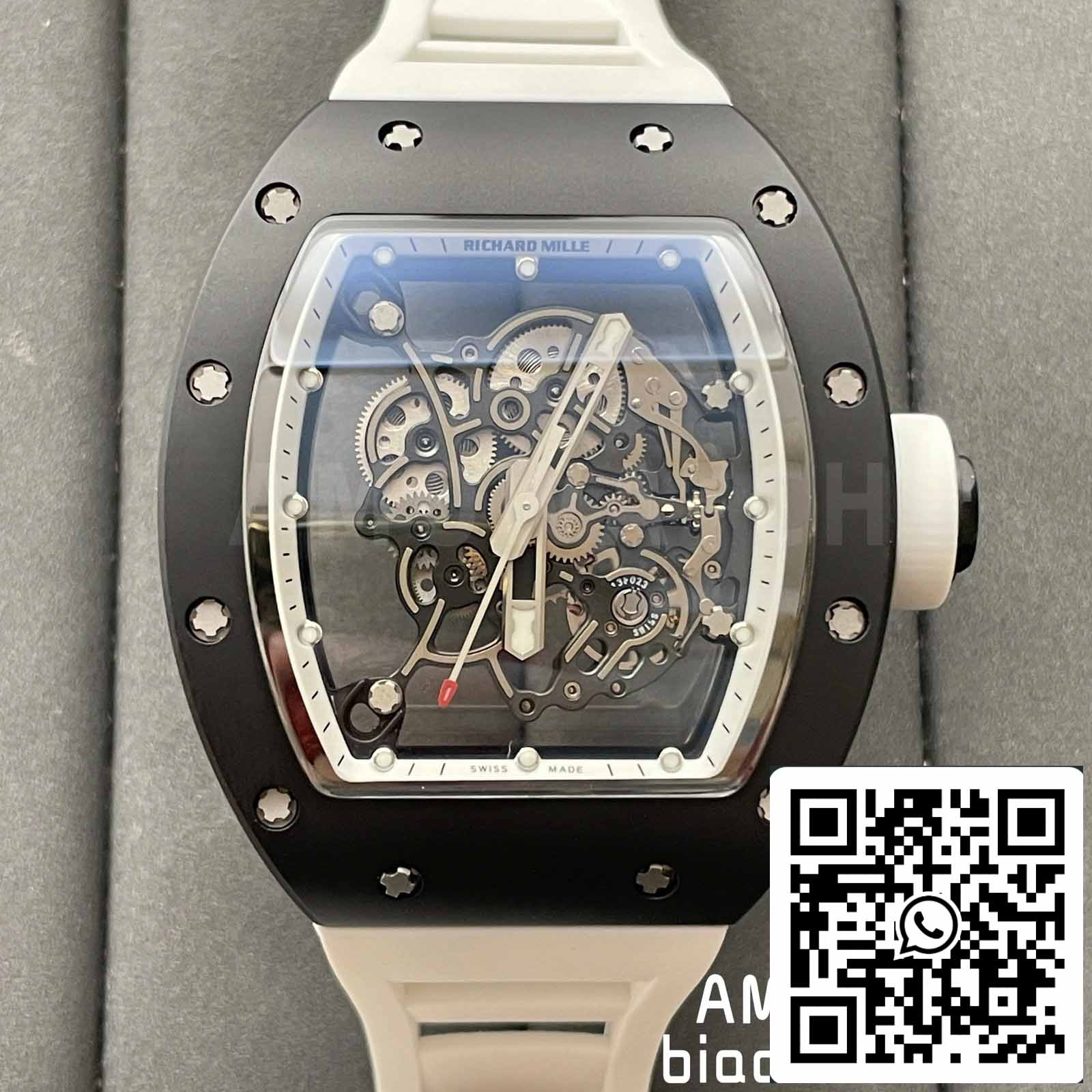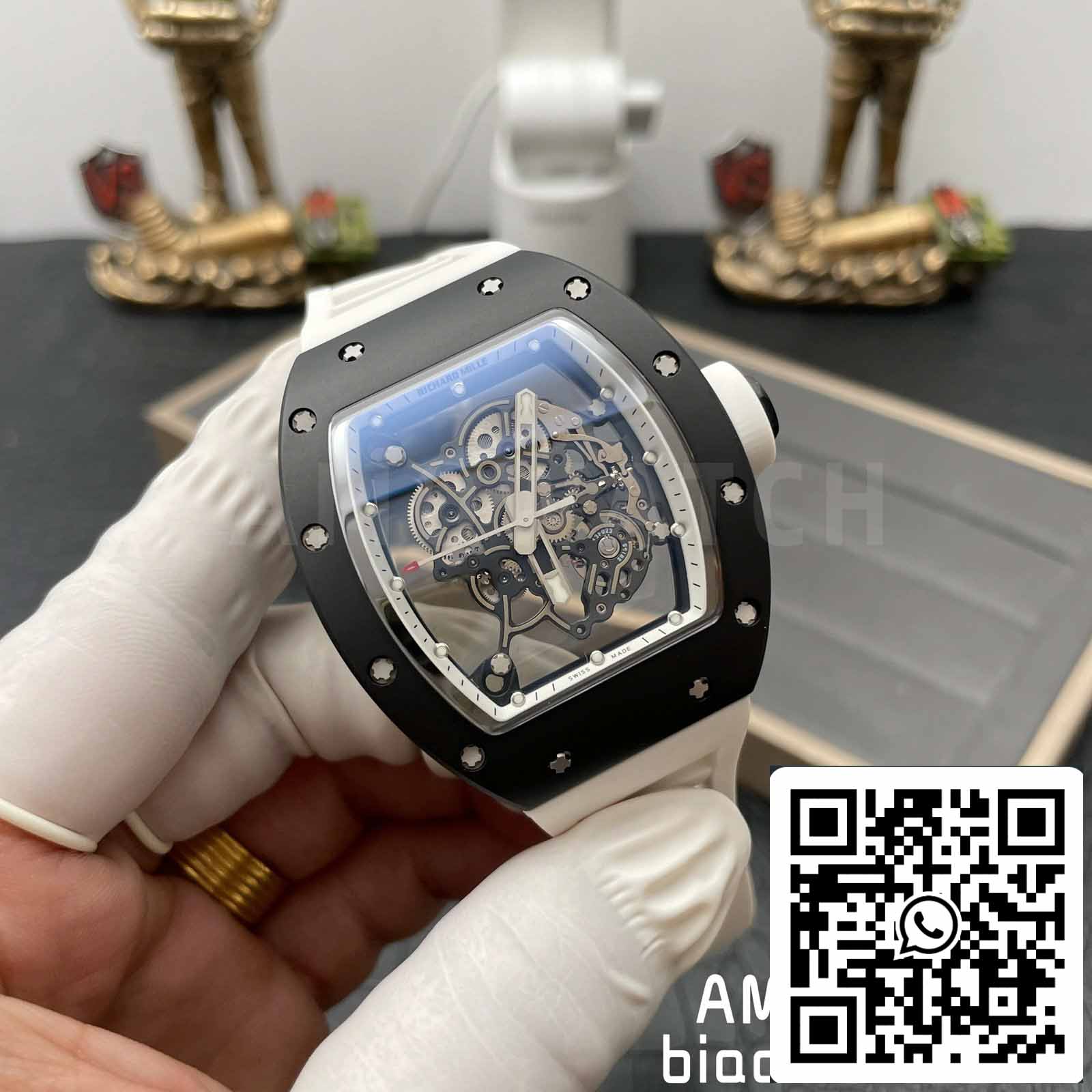 BBR Fabbrica [V3] RICHARD MILLE RM055 RM-055 Nero ceramica Cassa Bianco Gomma cinturino