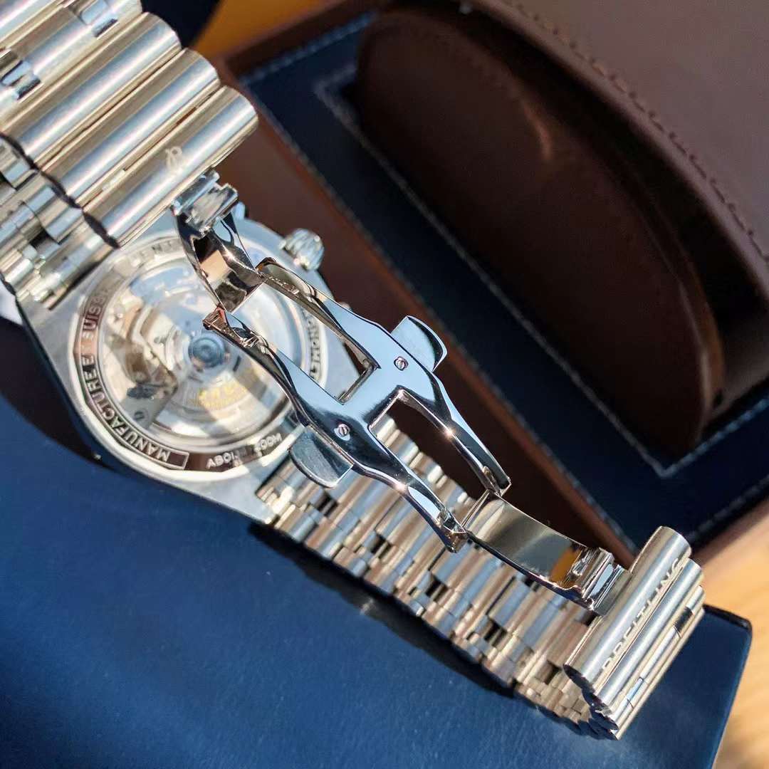 Breitling mechanical timing series AB01343A1L1A1 The classic and elegant "Panda plate", the overall color matching is very "toxic". Everything is based on the appearance, the perfect balance of toughness and exquisiteness! After several years of watch making, the road has been tortuous, and the result is the perfect use of the SW510 movimento imported from Switzerland (B01 basic movimento). The functions are synchronized with the original 42 mm acciaio inossidabile ratchet type one-way bezel, curved vetro zaffiro glass, double-sided anti-glare, and screw-in crown. , double gasket waterproof depth of 200 meters, Rouleaux butterfly buckle roller bead bracciale gives the watch a retro charm. This kind of bracciale was more common in the 1980s, and the unique shape is unforgettable, and it immediately reminds you of the 1950s and 1960s. The heroic appearance of a fighter pilot. 5w+ at the counter! Shipped with the latest counter Breitling packaging box!