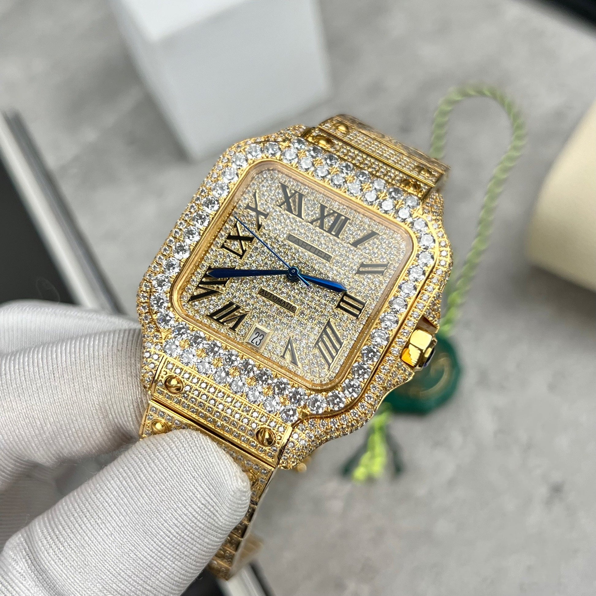 Cartier De Santos Custom full swarovski stone for men yellow gold pvd plated