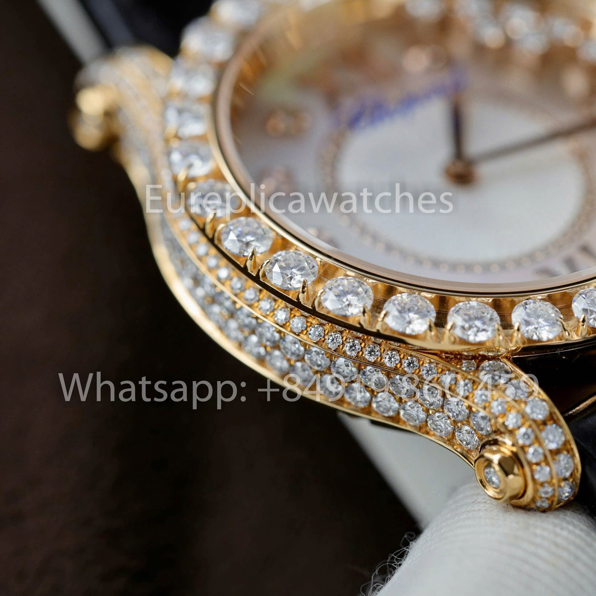 The Chopard Happy Sport 274809-5001 Joaillerie replica is a masterpiece of sophistication and luxury, designed for those who appreciate refined elegance. This exclusive version is customized with real gold plating, enhancing its opulent appeal. Adorned with brilliant moissanite stones that shine like diamonds, it exudes a dazzling charm.