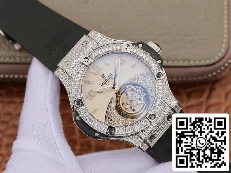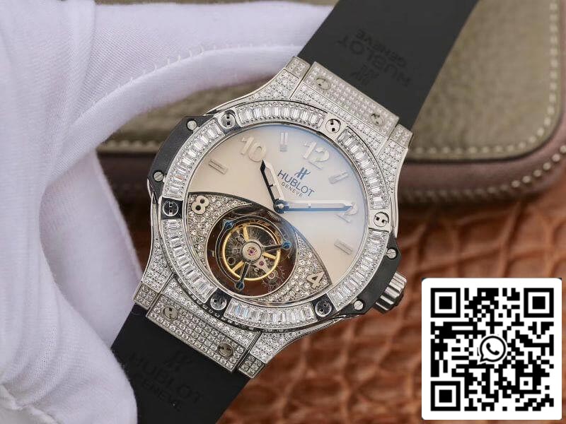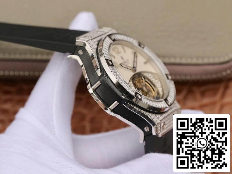 Hublot Classic Fusion 45mm Tourbillon With Diamond Gray Dial 1:1 Best Edition on Black Rubber cinturino Swiss Tourbillon