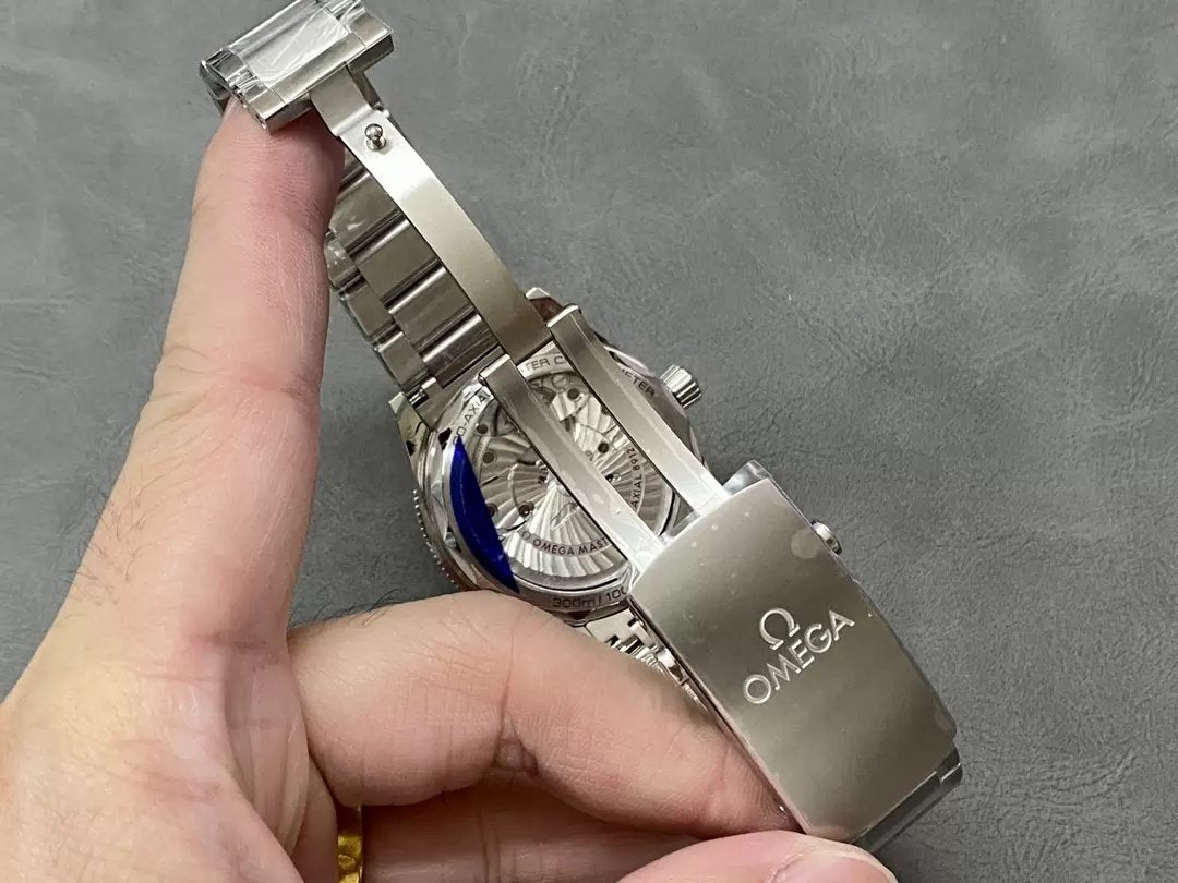 VS Omega's new Seamaster 300 features a vintage-style bubble crystal reminiscent of the "Ghost Party." It's powered by the modified 8912 movimento from ETA, with a quick-set feature for the secondo time zone adjustment, unlike the standard Seamaster 300 which uses the ETA 2824 movimento. The 41mm size is smaller than the previous Seamaster 300, making it easier to wear for those with smaller wrists. VS has already stocked this model for immediate shipment even before it hits the shelves at boutiques, which is pretty cool!
