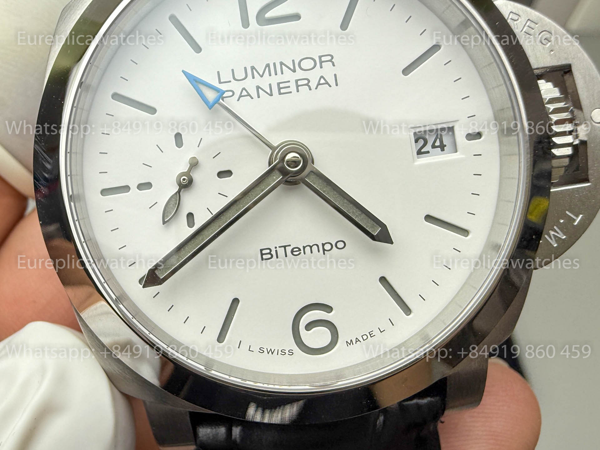 cinturino: High-quality Blu Pelle cinturino with Panerai-style acciaio inossidabile buckle.