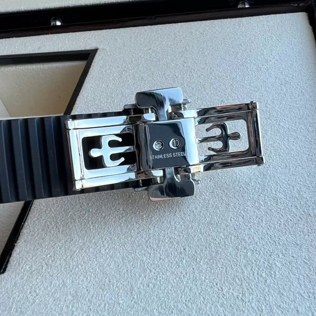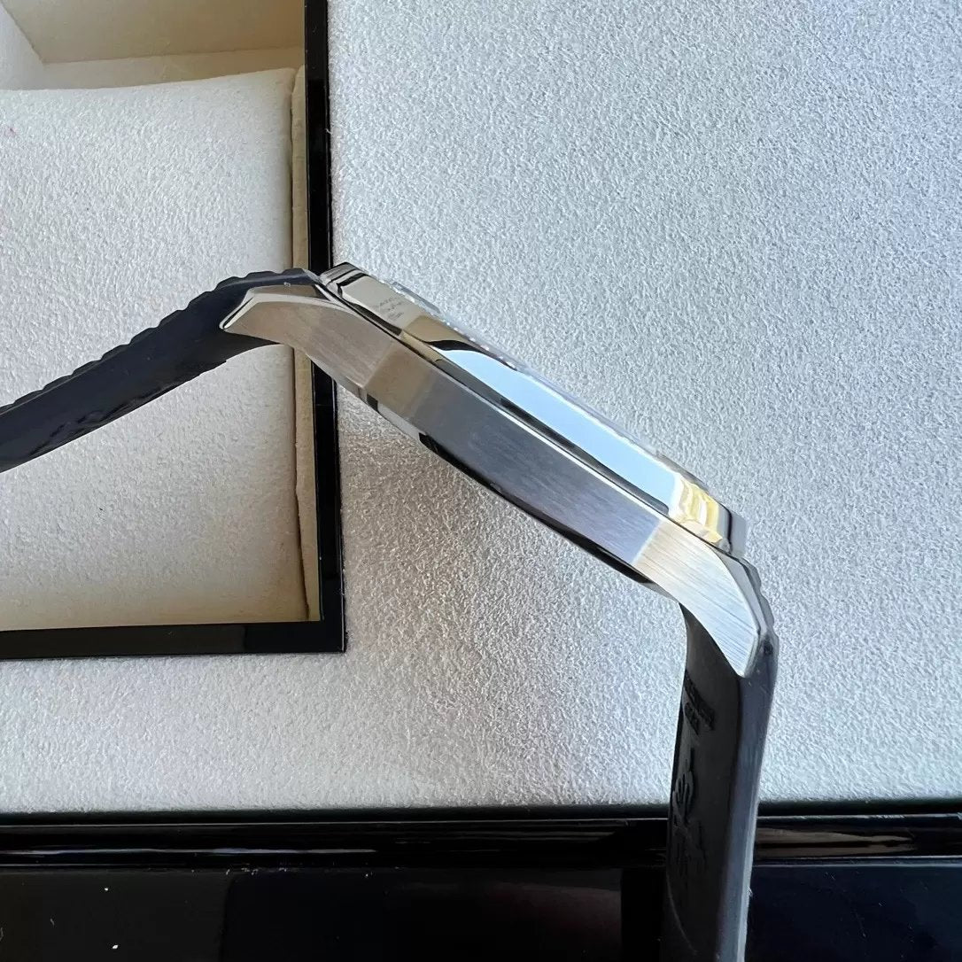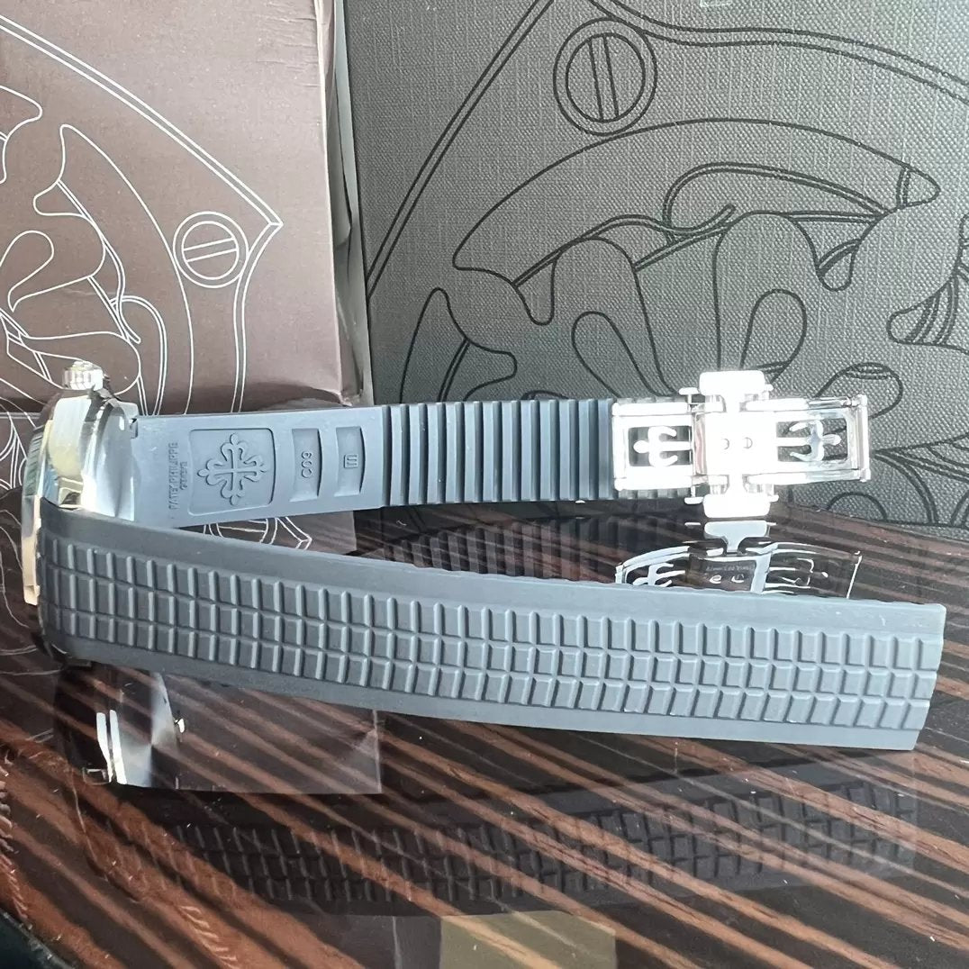 The Patek Philippe Aquanaut Luce, named after the Italian word for "light," embodies a reinterpreted modern casual chic style. Its round octagonal case, crafted with polished and satin-finished CNC engraving, exudes an elegant demeanor. Illuminated by 48 diamonds on its bezel, complemented by a seamlessly integrated composite cinturino adorned with acciaio inossidabile and satin finishes, it radiates its unique charm. Paired with a Swiss-made quartz movimento and embossed dial patterns, it extends the classic essence of the Aquanaut, seamlessly blending modern casual chic with elegance. The matte pearl coating harmonizes perfectly with the cinturino in the same color scheme. Available in steel with options including eternal matte white (010), classic elegant black (001), and bold khaki green (011), its new 38.8mm size fits the wrist perfectly. The exclusive custom-designed folding clasp, featuring four independent locking clasps, ensures the utmost attention to detail and quality.
