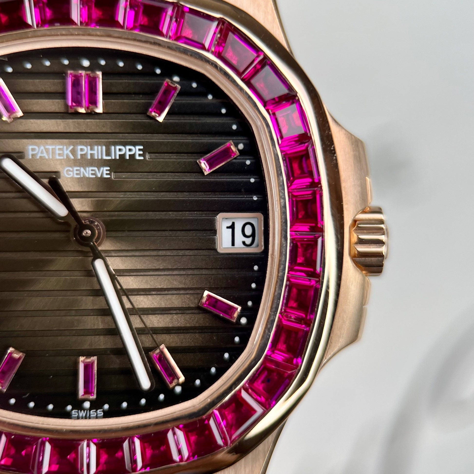 Patek Philippe Nautilus 5711 18k rose gold 1:1 best Edition PPF Fabbrica custom Ruby Stone