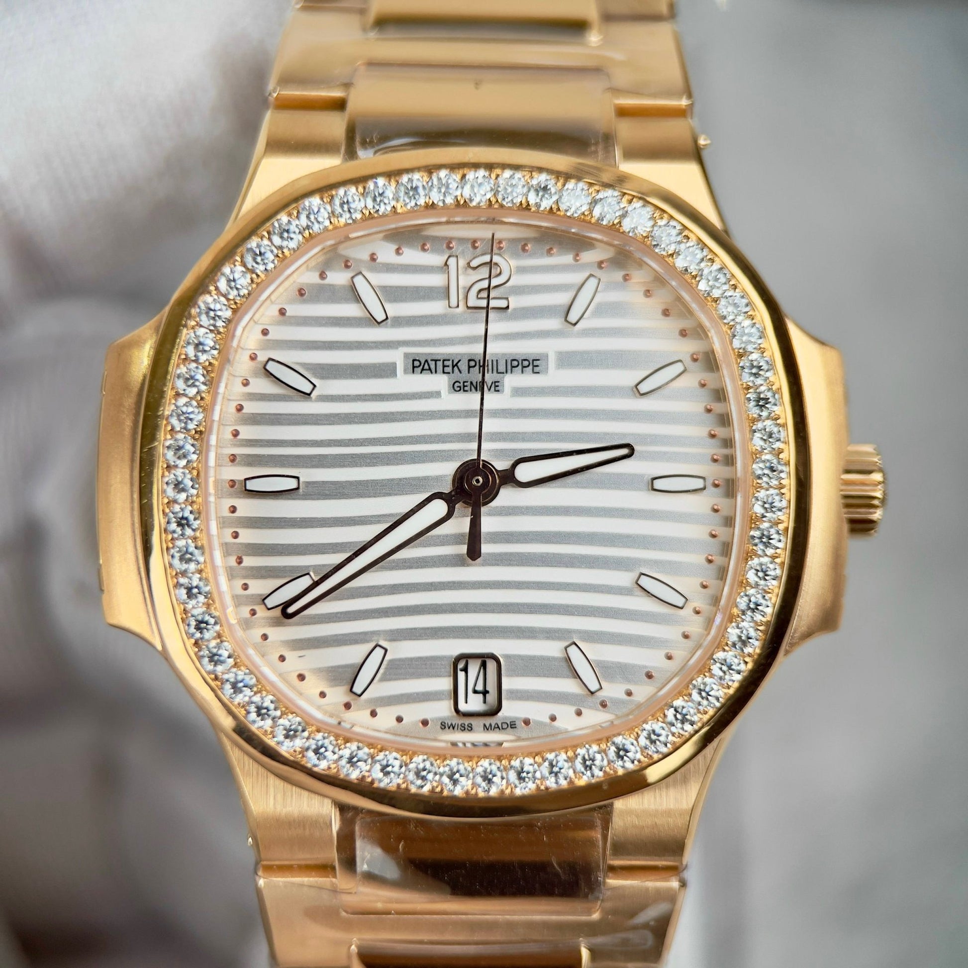 Patek Philippe Nautilus 7118/1R-010 18k Oro filled with quadrante bianco custom Moissanite stone