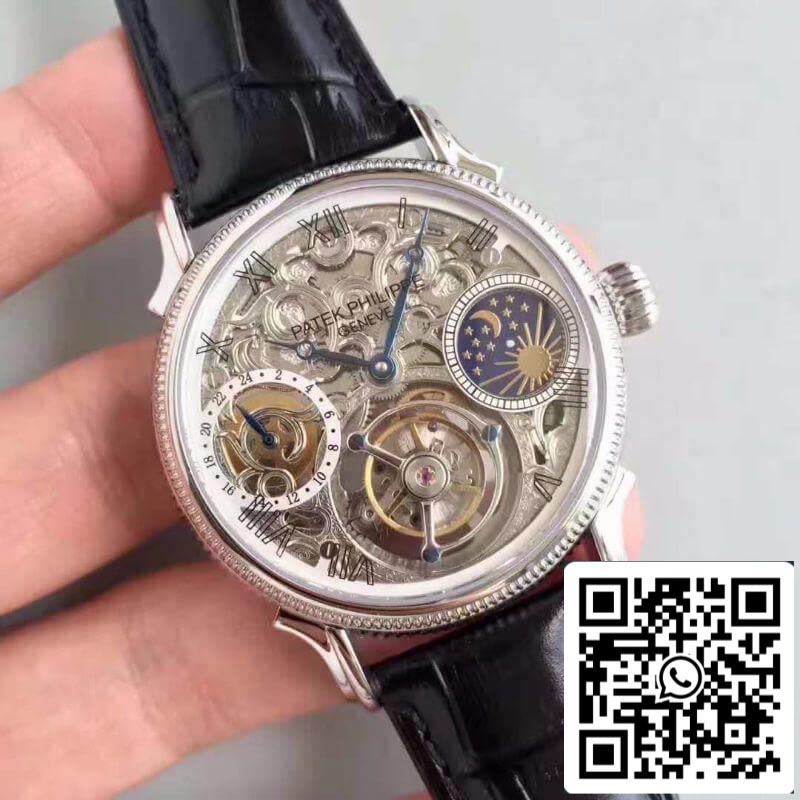 Patek Philippe Tourbillon Moonphase 1:1 Best Edition Swiss Tourbillon Skeleton and White Dial