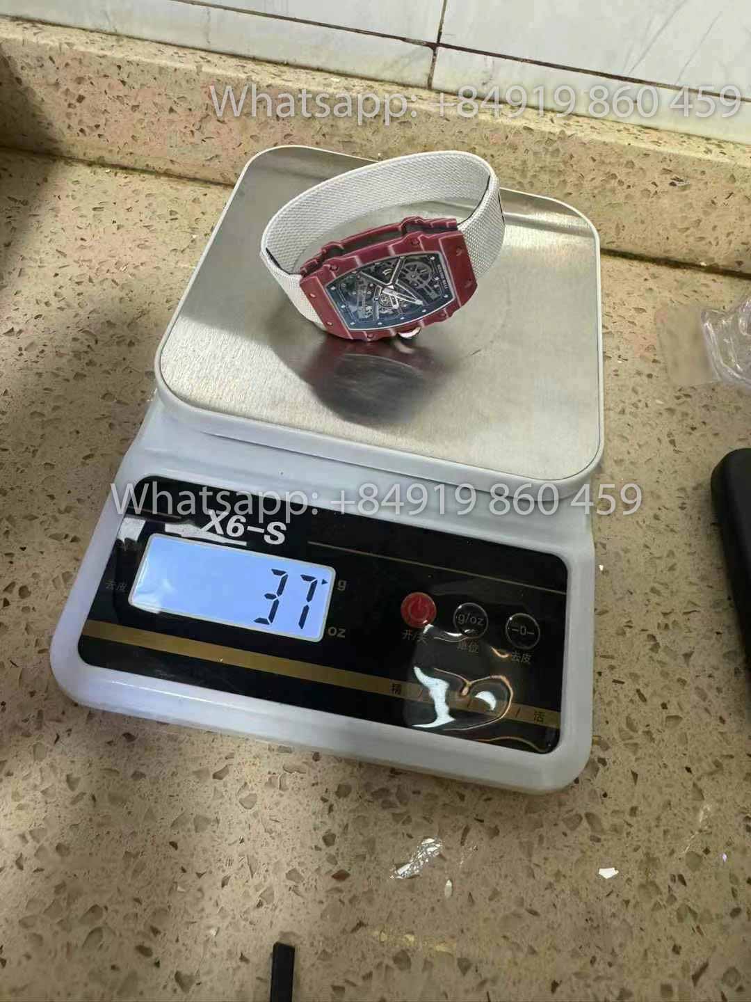 This is the most customized version of the RM67-02 on the market. All the materials used are of the highest quality, making it resemble the authentic version as closely as possible, while the price is extremely affordable, only a few thousand USD. The weight ranges from 36 to 37 grams, compared to the original's 32 grams, but it is still perfectly 1:1 in size with the original. This version is dedicated to Qatari high jump athlete Mutaz Essa Barshim. As soon as it was introduced, fans gave the watch the name Richard Mille RM 67-02 High Jump. One more special feature is the red-and-white case, symbolizing the flag of the wealthy nation of Qatar