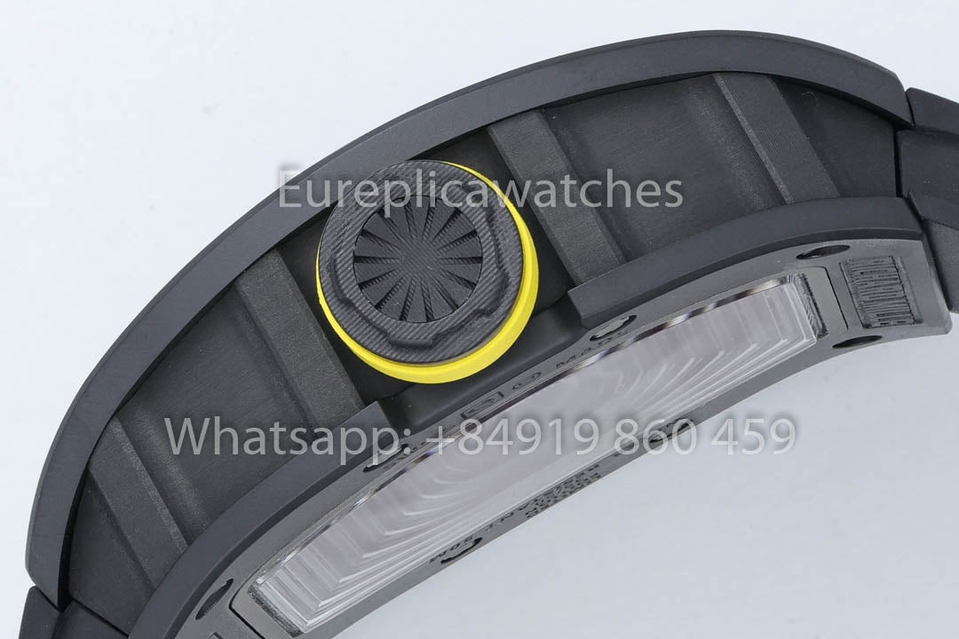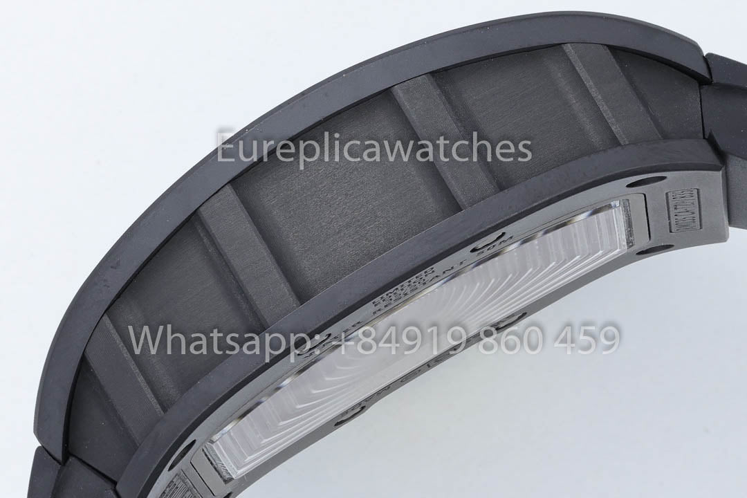 RM 035 Black Toro: Bezel and caseback made from TZP-N black ceramic, an ultra-light material (6g/cm³) with extremely high hardness, very low thermal conductivity, and refined texture.