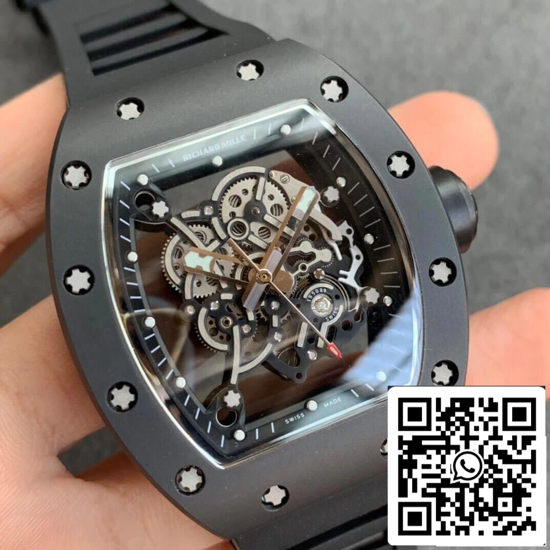 Richard Mille RM055 1:1 Best Edition KV Fabbrica V2 Black Ceramic Rubber cinturino