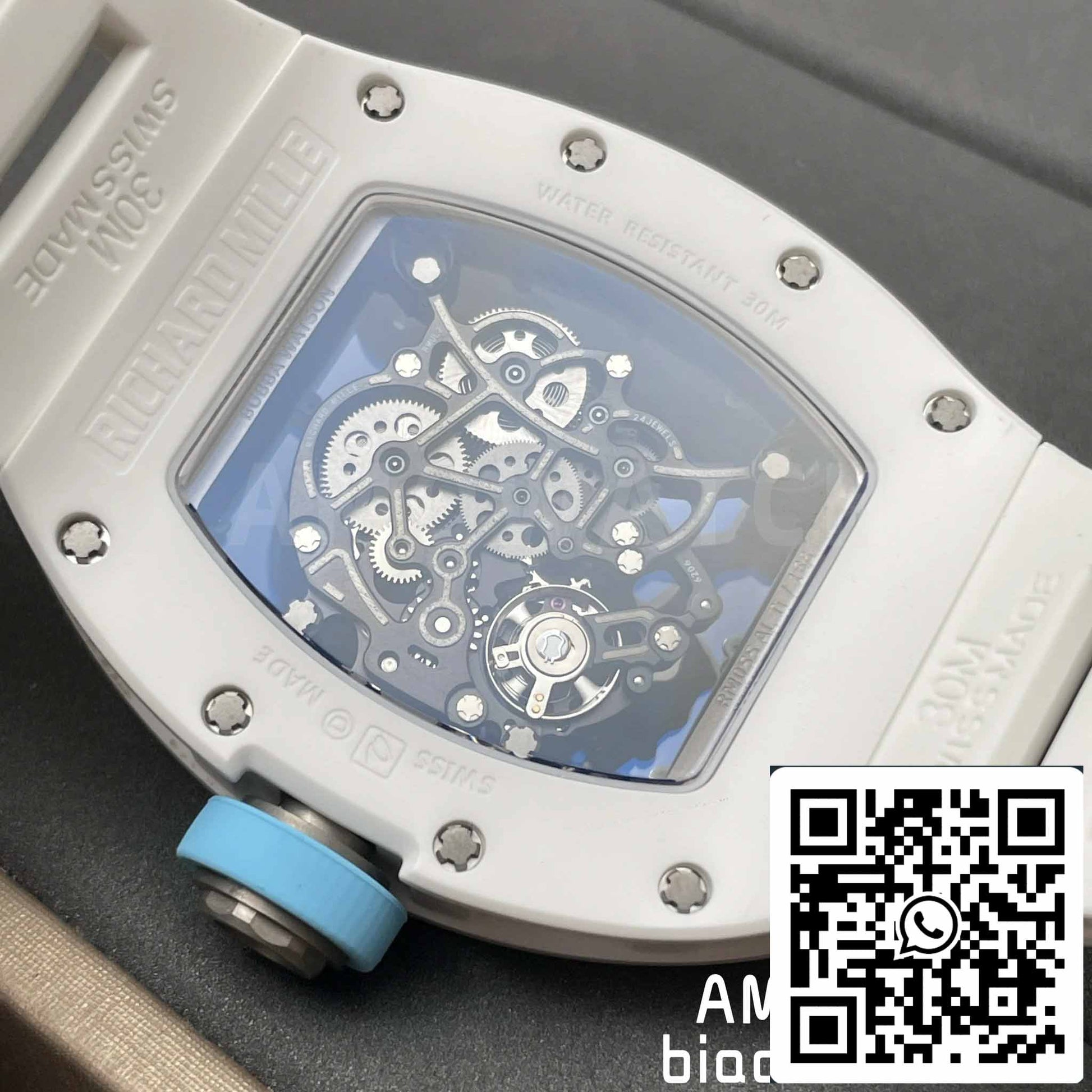 RICHARD MILLE RM055 Bianco ceramica Cassa 1:1 edizione migliore BBR Fabbrica [V3] Bianco Gomma cinturino