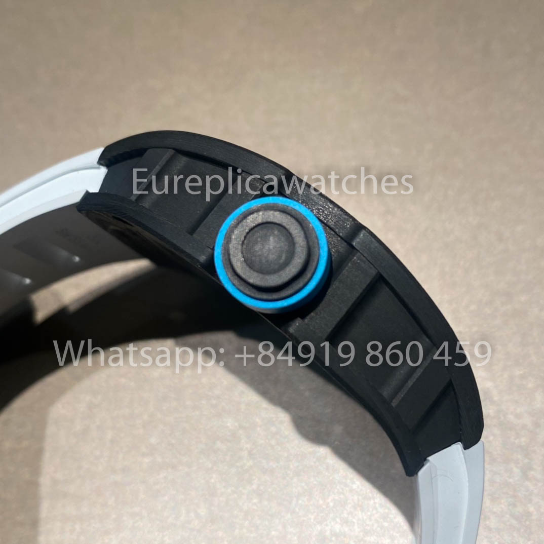 RICHARD MILLE RM055 fibra di carbonio Cassa 1:1 Best Clone APS Fabbrica quadrante blu Bianco cinturino
