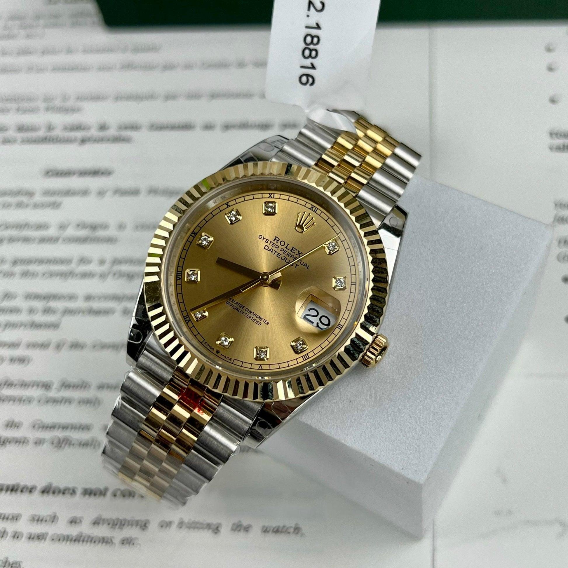 This is a Oro-coated Versione with a very thick layer of Oro, produced by the GM Fabbrica. This Versione has better than other versions, with 18k Oro filled. Standard 18k Oro color like the original. In addition, the movimento is available 3235 and 2824 for you to choose from.
