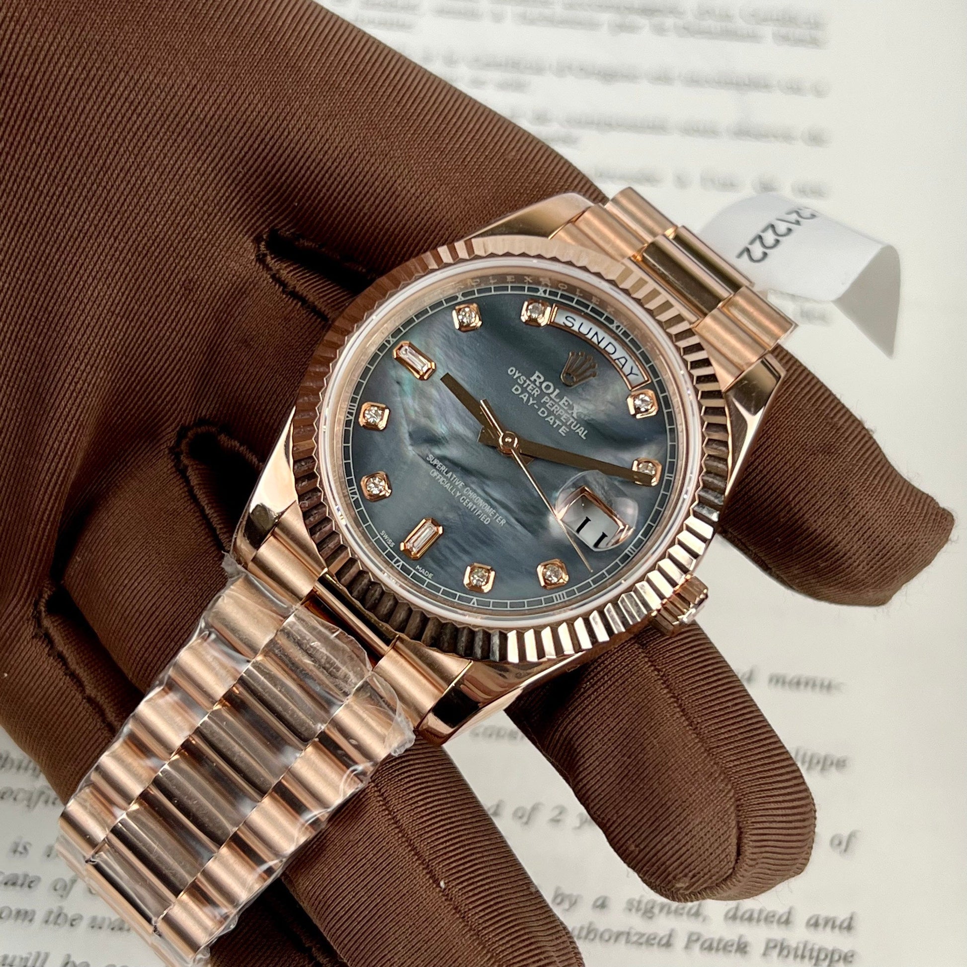 Rolex Day-Date Rosa Oro Rosa Diamond quadrante 36mm 128235 Best 1:1 Edizione coated 18k Rosa Oro 130 gram