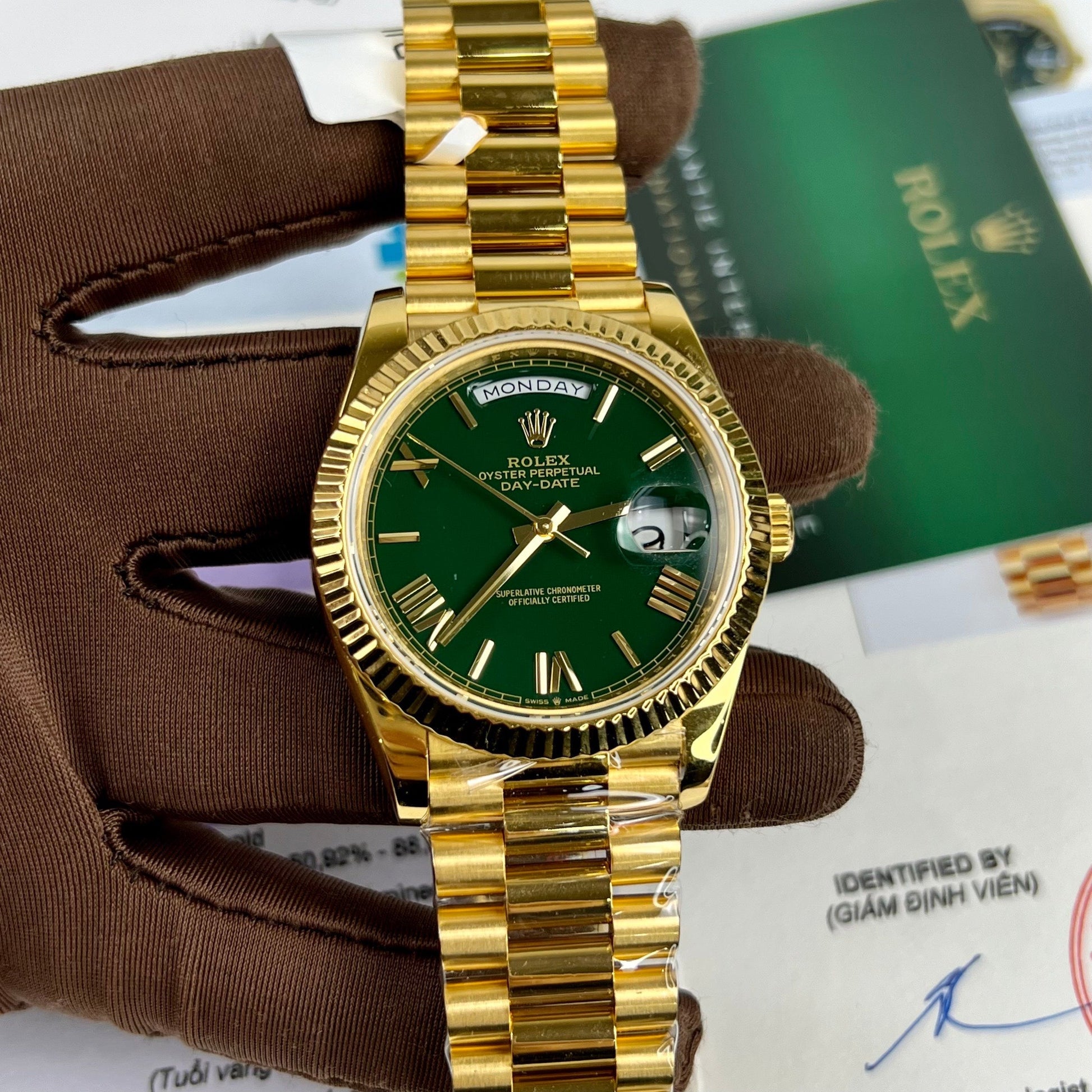 Rolex DayDate 40mm 228238 coated 18k Yellow Oro President quadrante verde 130 gram