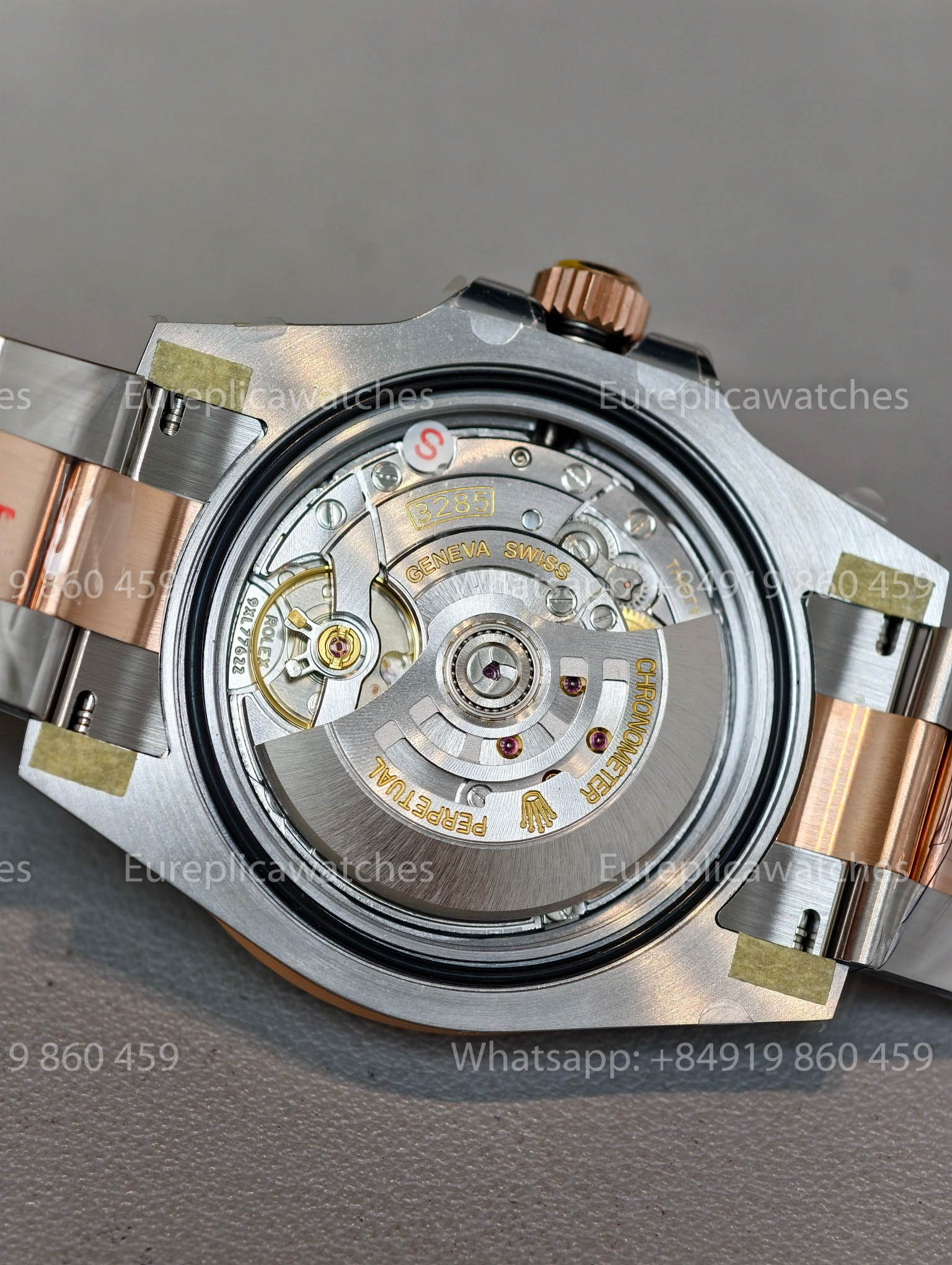 La lancetta GMT funziona in modo indipendente rispetto alle ore principali, permettendo di leggere facilmente un secondo fuso orario. La risposta della corona e la sensazione di regolazione sono molto vicine all’orologio autentico.