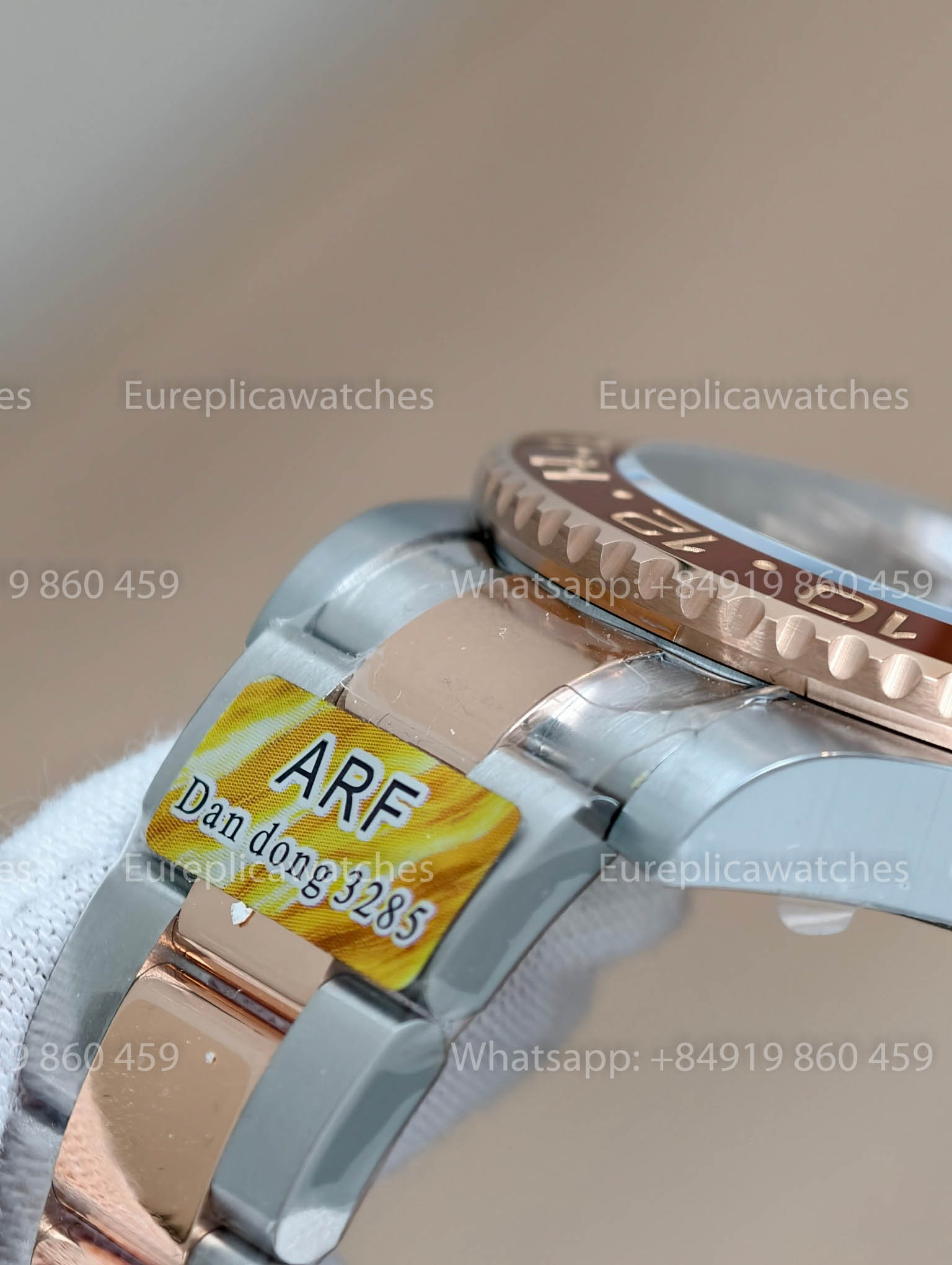 Il GMT?Master II "Root Beer" unisce acciaio e tonalità calde color cioccolato/rame, creando una delle combinazioni più eleganti della linea GMT. Questa versione ARF 1:1 replica con grande cura la presenza al polso del modello originale.