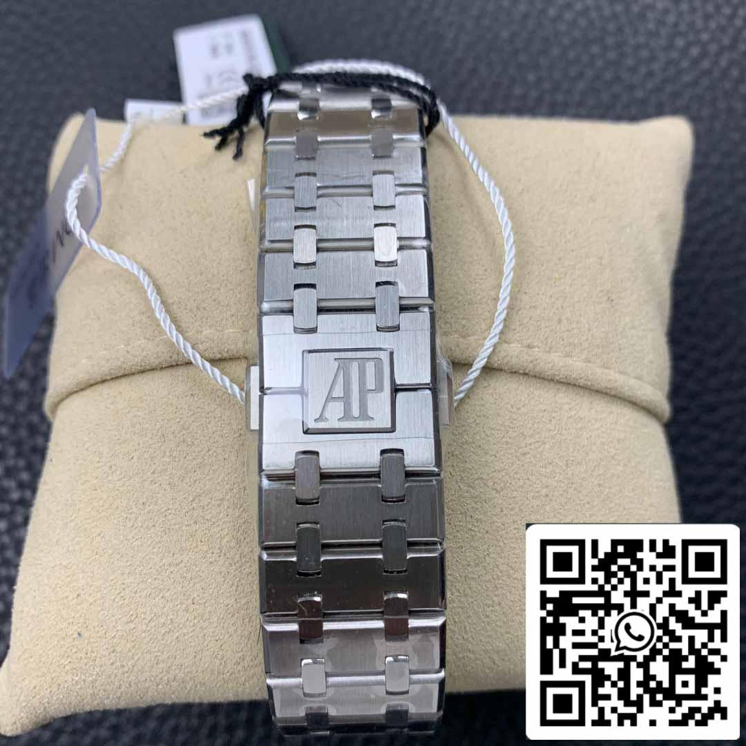 - A estrutura de elos "cônicos" do Royal Oak apresenta elos de tamanhos variados, cada um meticulosamente finalizado e montado à mão. O fecho finalmente atingiu o mesmo nível de precisão do original, com uma fonte cinza luminosa que brilha intensamente.