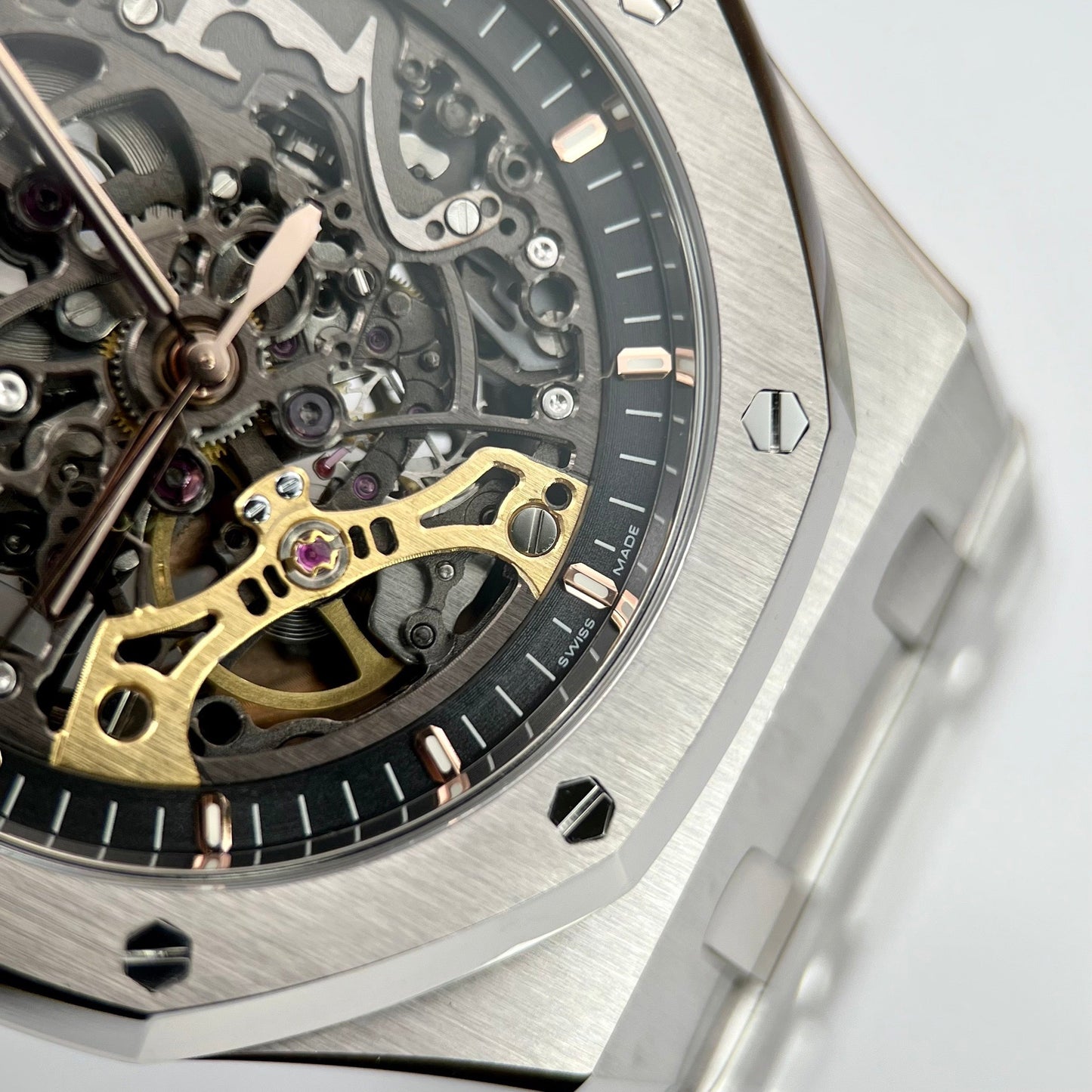 Audemars Piguet Royal Oak Roda de equilíbrio duplo aberta 15407ST.OO.1220ST.01