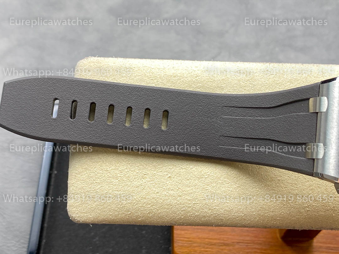 O relógio vem com um resistente cinto de borracha cinza com fivela de titânio, aprimorando o conforto e o apelo esportivo. O fundo da caixa de safira revela os detalhes intrincados do movimento do cronógrafo réplica.