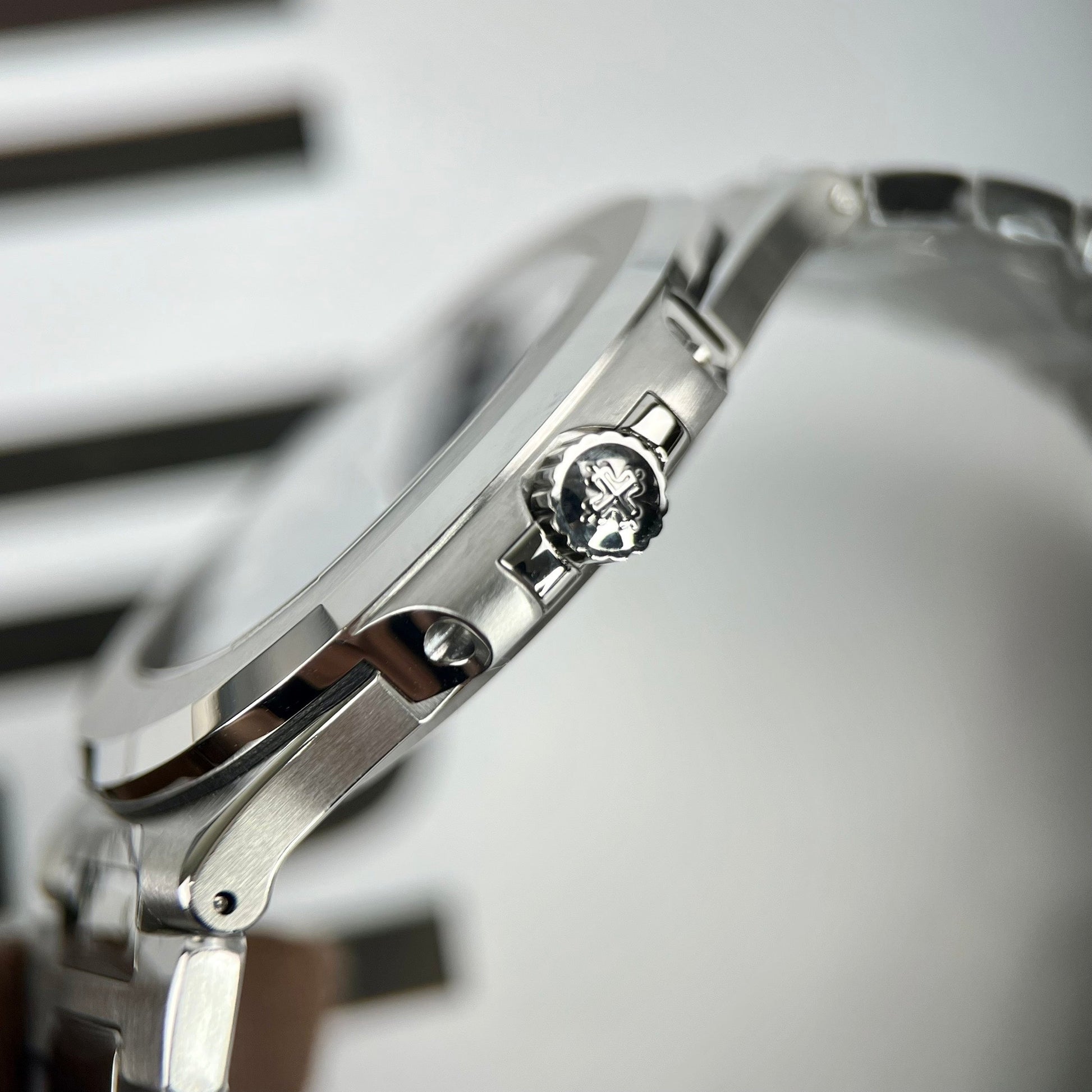 A versão que você está vendo é da PF Fabbrica. Uma Fabbrica com muitos produtos famosos da Patek Philippe. Com tamanho, parâmetros e quadrante genuínos.
