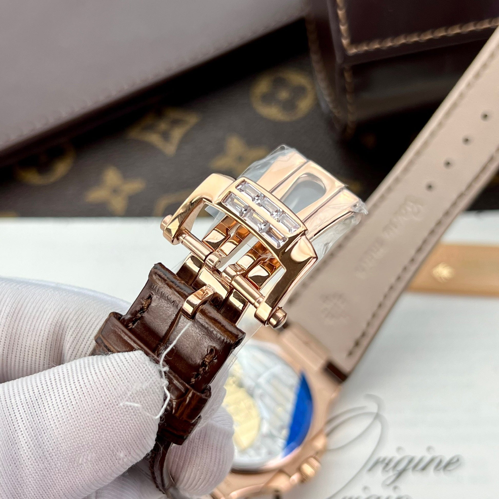 A versão que você está vendo é da GR Fabbrica. Uma Fabbrica com muitos produtos famosos, o Patek 5205. Com tamanho e parâmetros, assim como o quadrante, como genuínos.