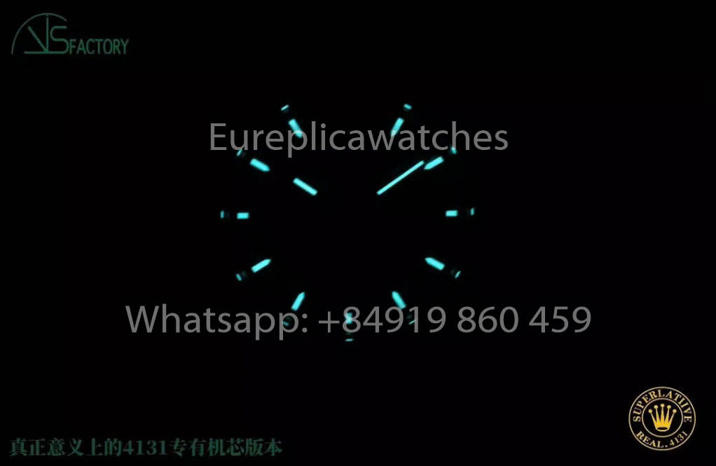 O VS 4131 Daytona é um relógio cronógrafo de alta precisão, apresentando um quadrante cinza cimento com submostradores Nero, um acciaio inossidabile Cassa 904L e um Nero ceramica tacchimetro lunetta . Este modelo está equipado com o movimento 4131 exclusivo da VS Fabbrica , projetado com base na estrutura de movimento original da Rolex .