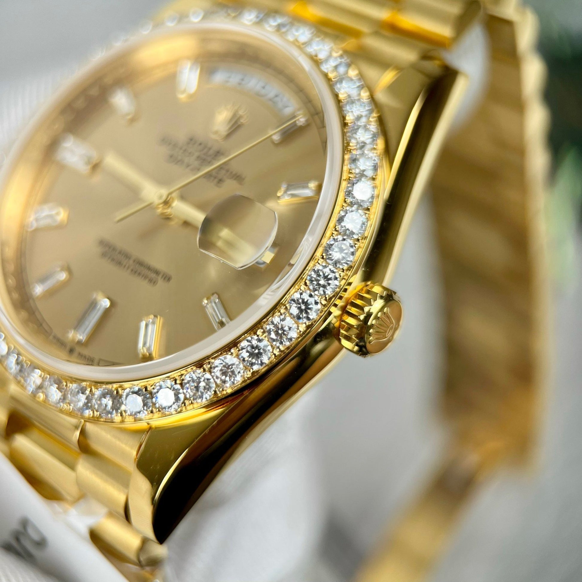 Rolex Day-Date 40 228238 Champage quadrante Oro preenchido 18k Moissanite lunetta