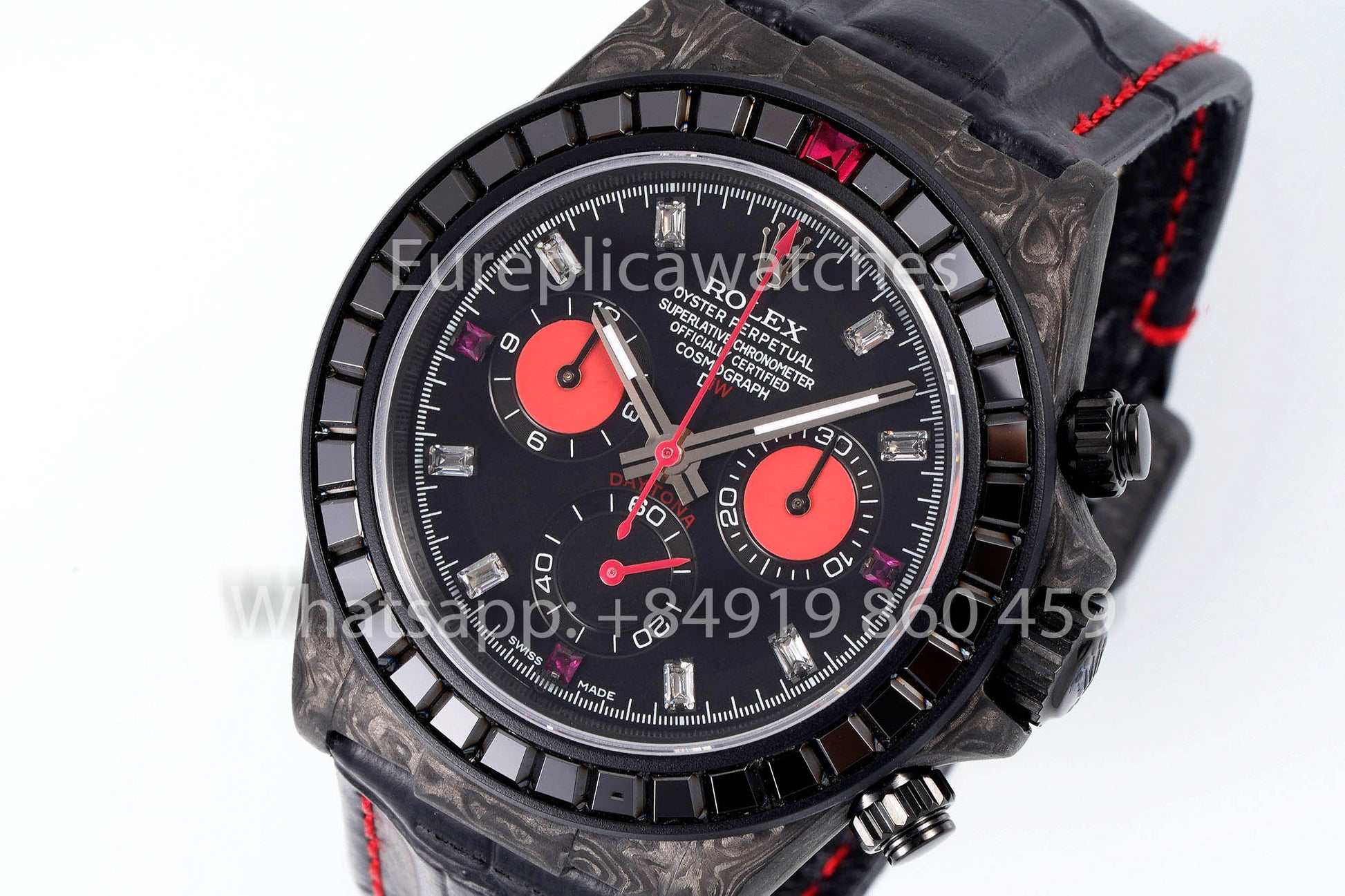 Rolex Daytona Carbonio Cassa Rainbow Nero 1:1 Melhor Clone Diw Custom Pelle cinturino