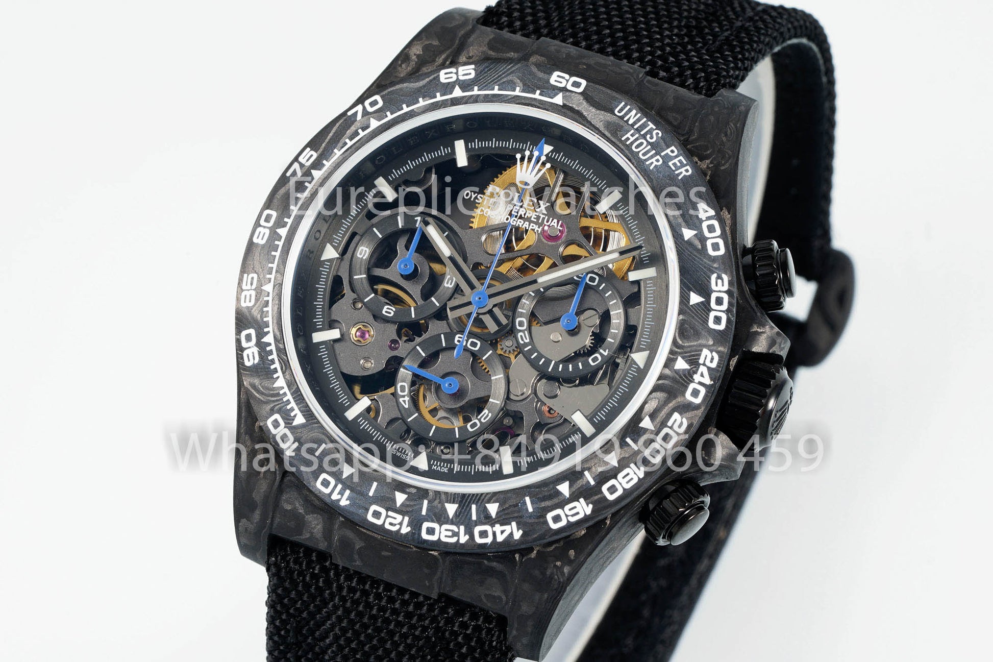 Rolex Daytona scheletrato quadrante Diw Custom NTPT Carbonio Cassa 1:1 Best Clone Blu Hands